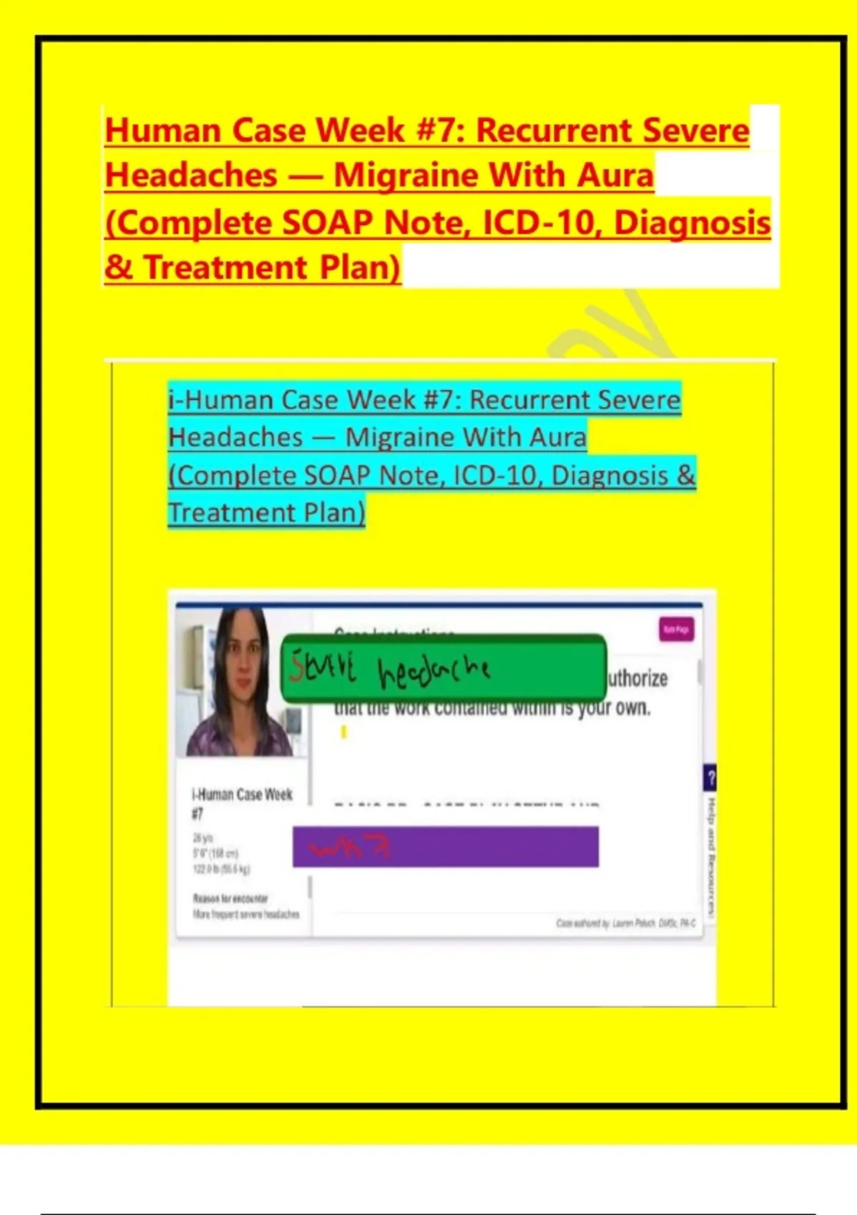 Human Case Week #7: Recurrent Severe Headaches — Migraine With Aura (Complete SOAP Note, ICD-10, Diagnosis & Treatment Plan)