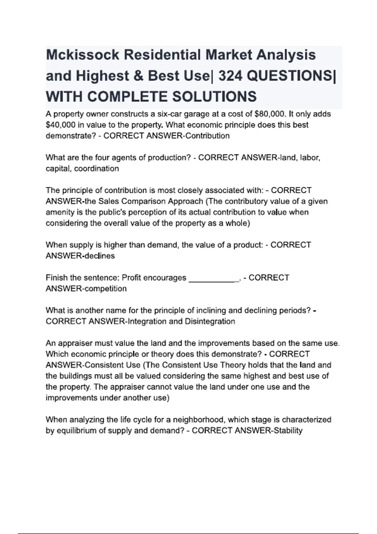 Mckissock Residential Market Analysis and Highest & Best Use ..questions and answers