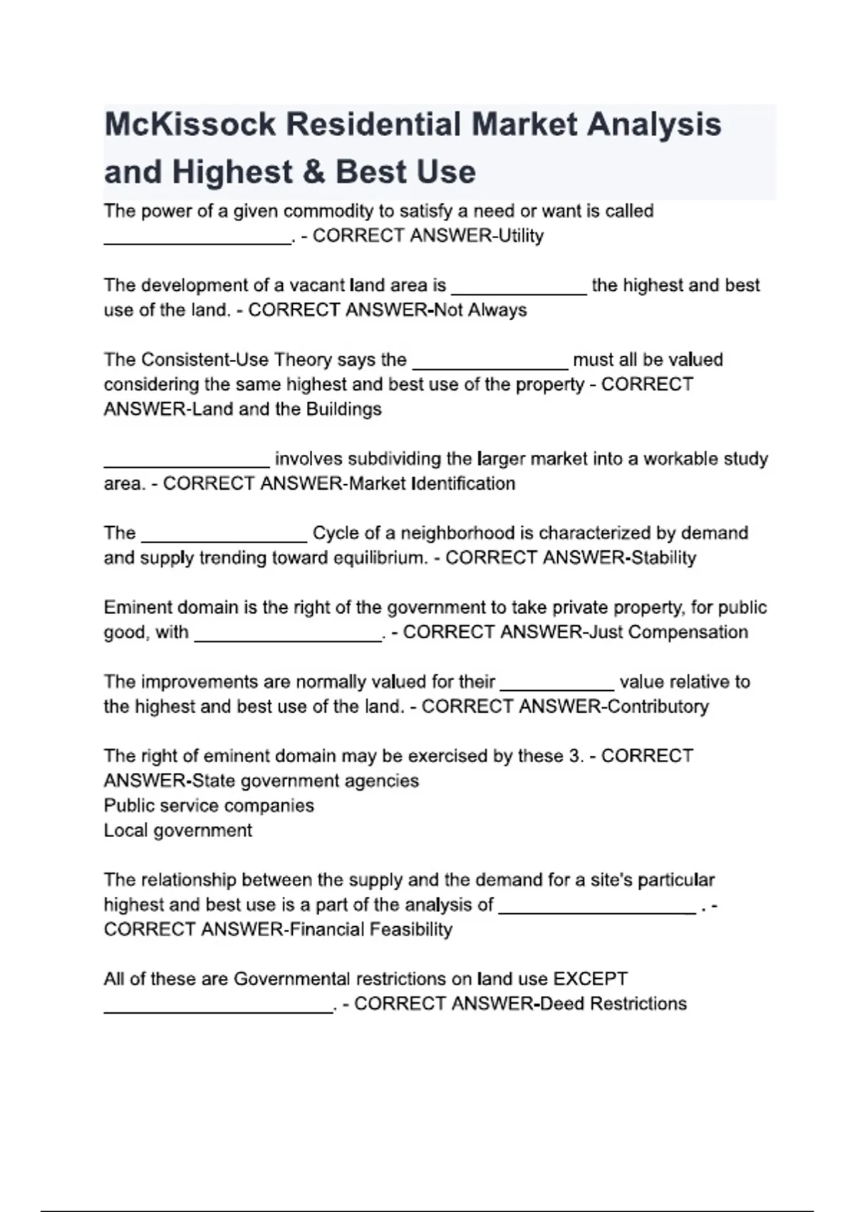 McKissock Residential Market Analysis and Highest & Best Use questions and answers