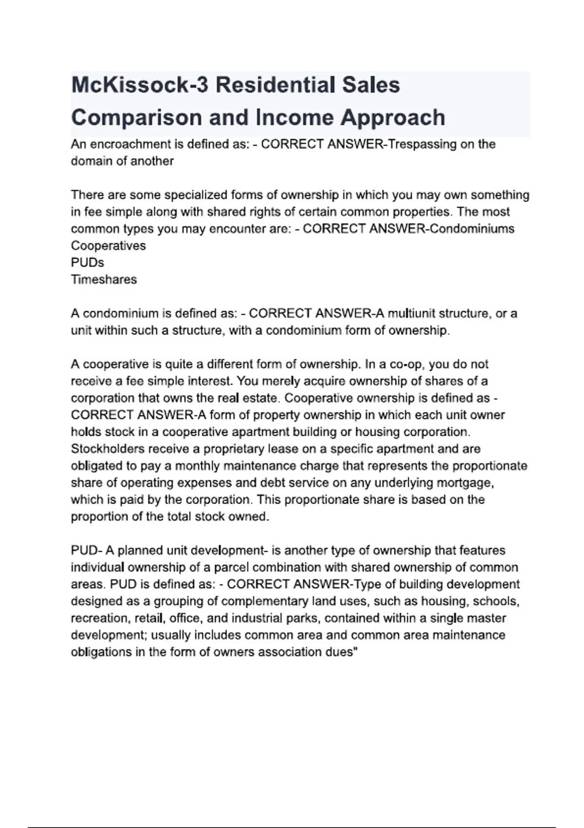 McKissock-3 Residential Sales Comparison and Income Approach questions and answers