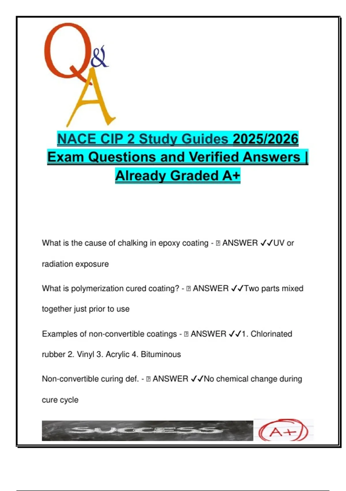 NACE CIP Level 2 Study Guide 2025/2026 – 100+ Verified Questions with Answers | Coatings, Galvanizing, Surface Prep, Inspection, Corrosion Control