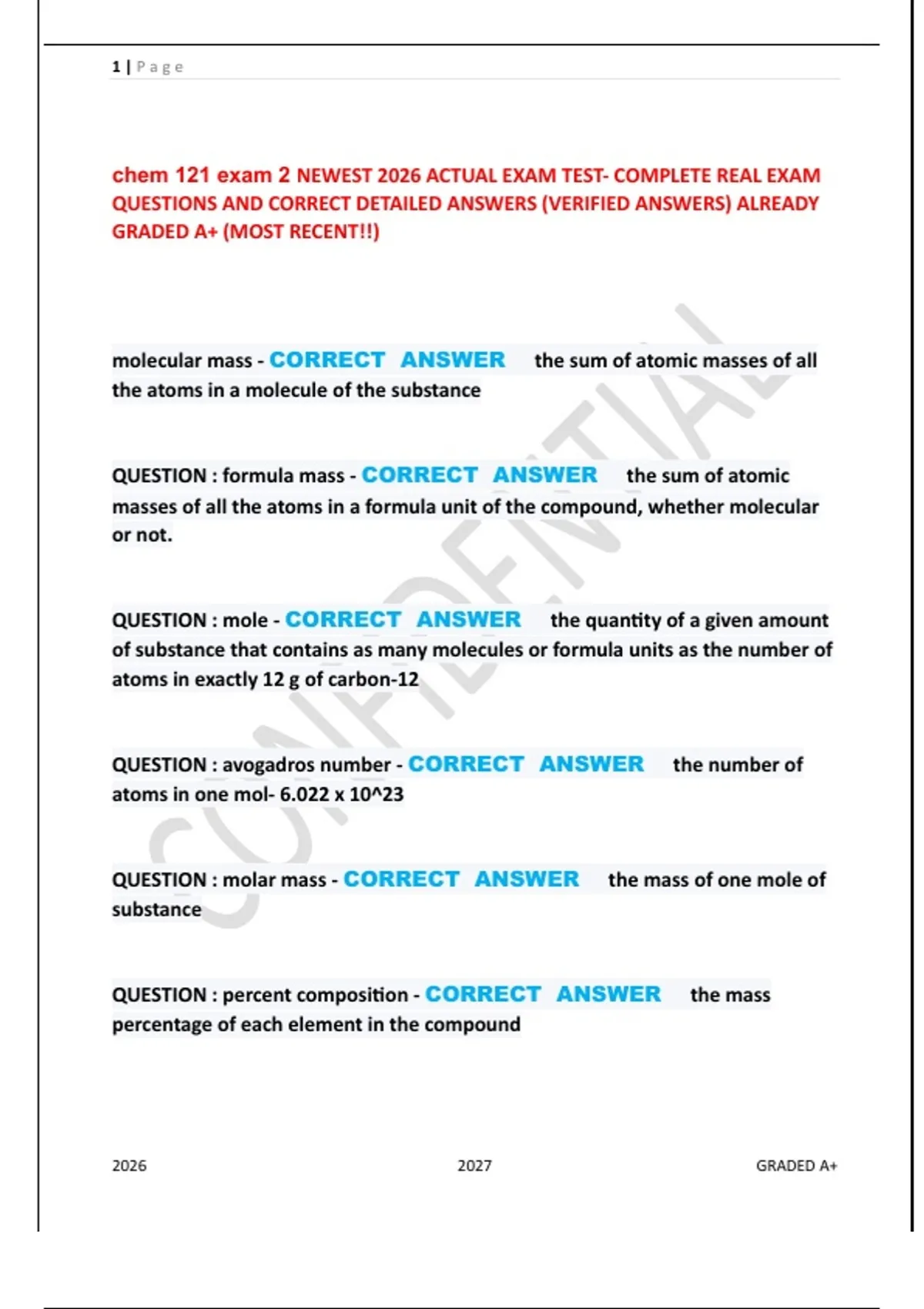 chem 121 exam 2 NEWEST 2026 ACTUAL EXAM TEST- COMPLETE REAL EXAM