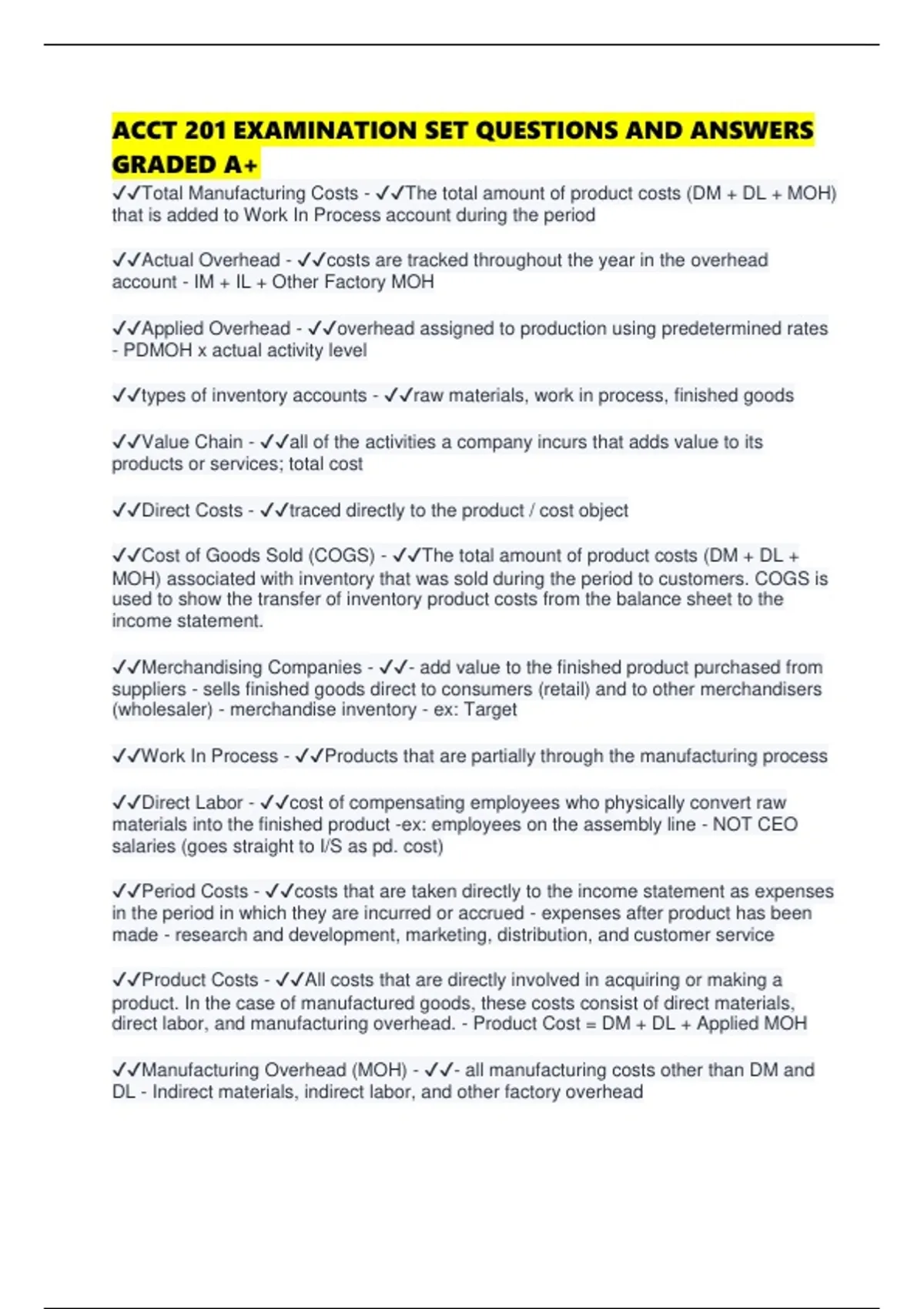 ACCT 201 EXAMINATION SET QUESTIONS AND ANSWERS GRADED A+