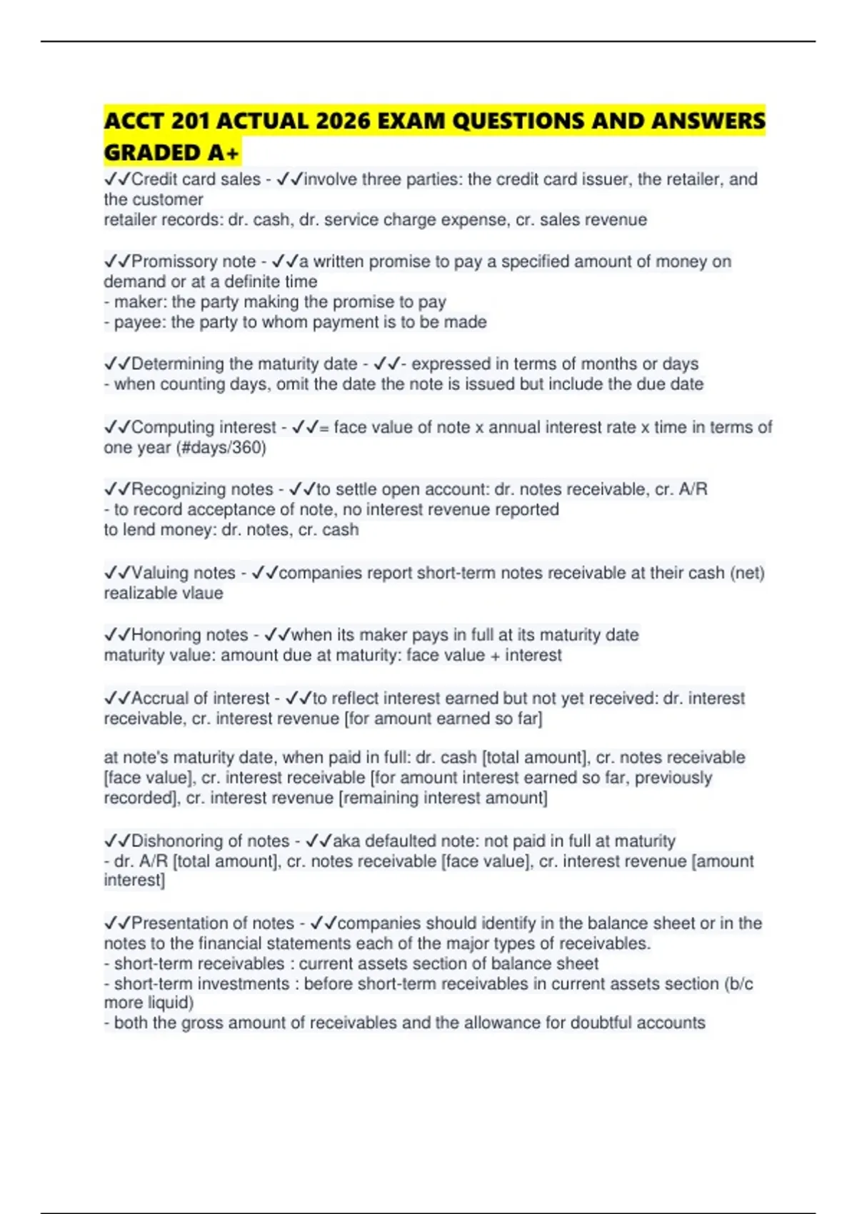 ACCT 201 ACTUAL 2026 EXAM QUESTIONS AND ANSWERS GRADED A+