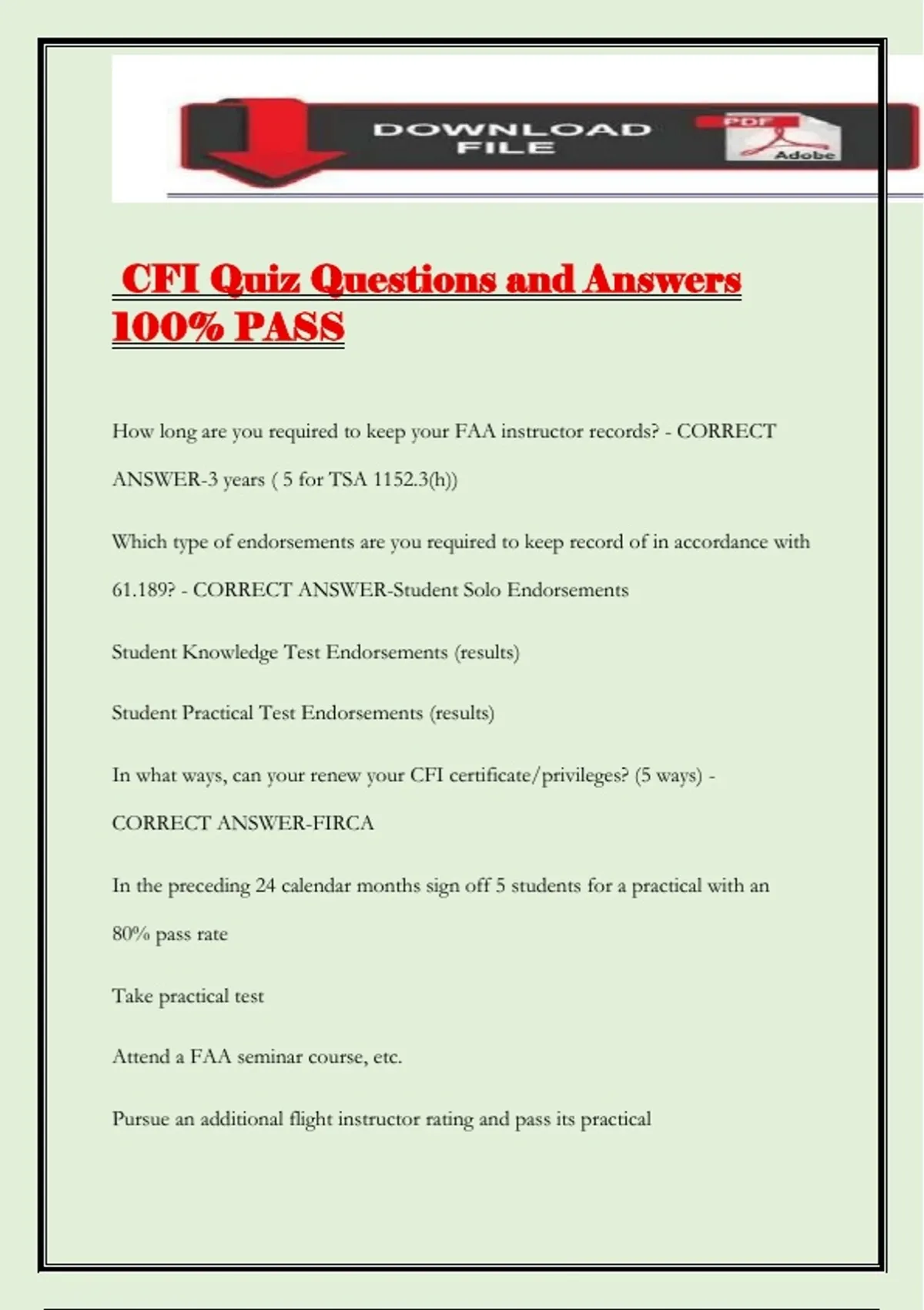 CFI Quiz Questions and Answers