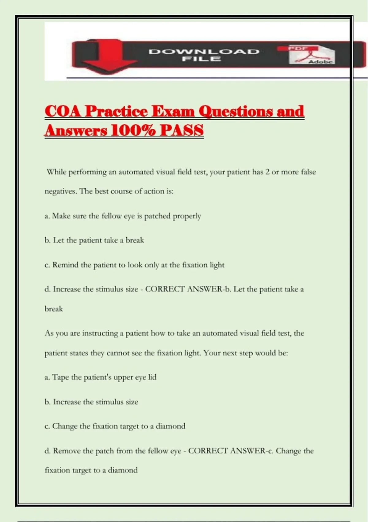 COA Practice Exam Questions and