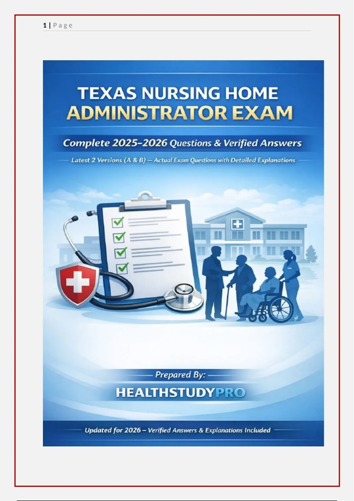 Prepare for the Texas Nursing Home Administrator Exam with our complete 2025–2026 study guide. Includes the latest 2 versions (A & B) of actual exam questions, verified answers, and detailed explanations. Stay ahead with updated content, expert-reviewed solutions, and practical insights to pass your exam confidently. Perfect for administrators, healthcare professionals, and students seeking a comprehensive, reliable study resource