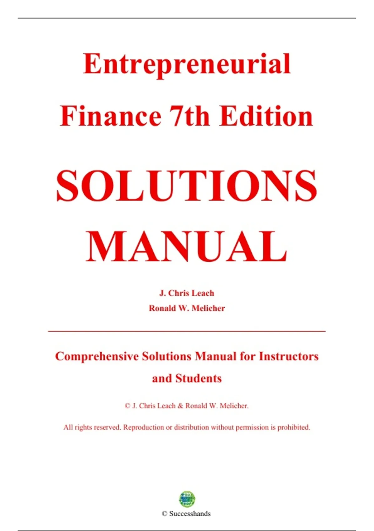 , Solutions Manual for Entrepreneurial Finance (7th Edition)