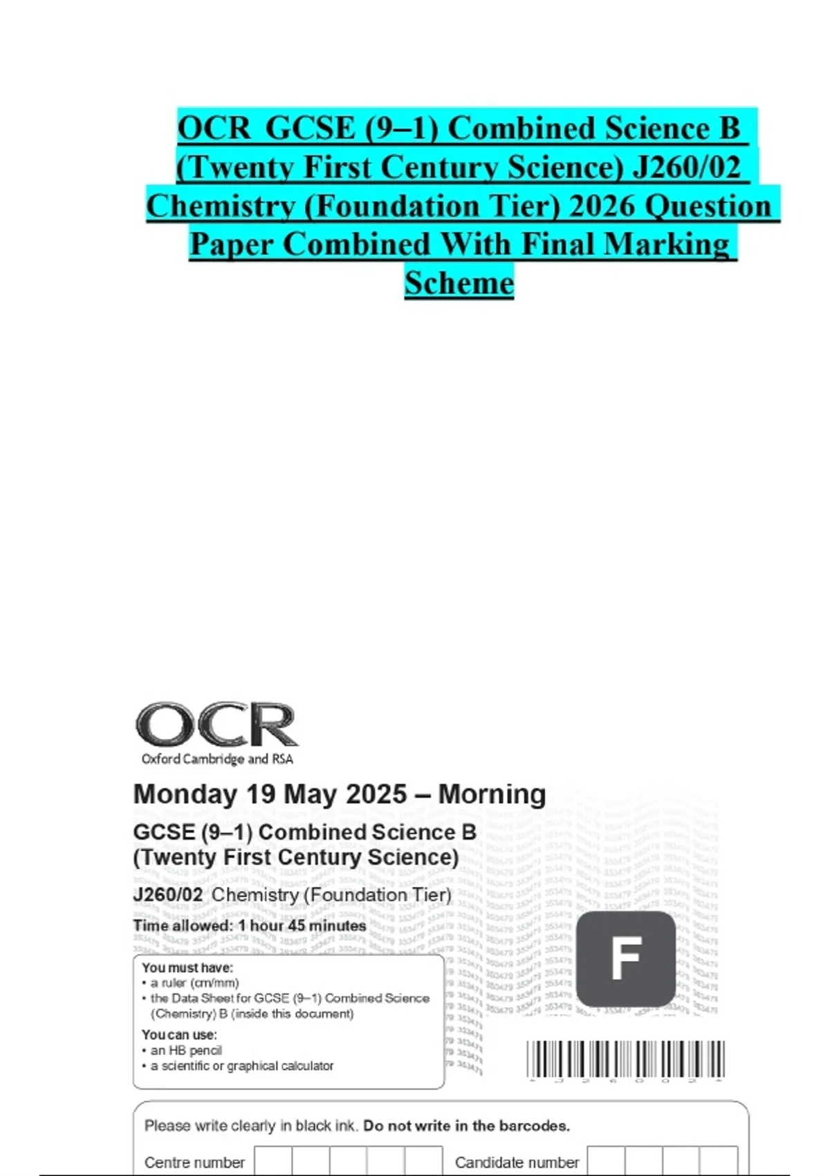 OCR GCSE (9–1) Combined Science B (Twenty First Century Science) J260/02 Chemistry (Foundation Tier) 2026 Question Paper Combined With Final Marking Scheme