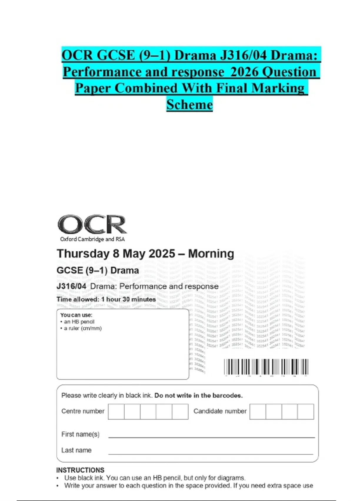 OCR GCSE (9–1) Drama J316/04 Drama: Performance and response 2026 Question Paper Combined With Final Marking Scheme