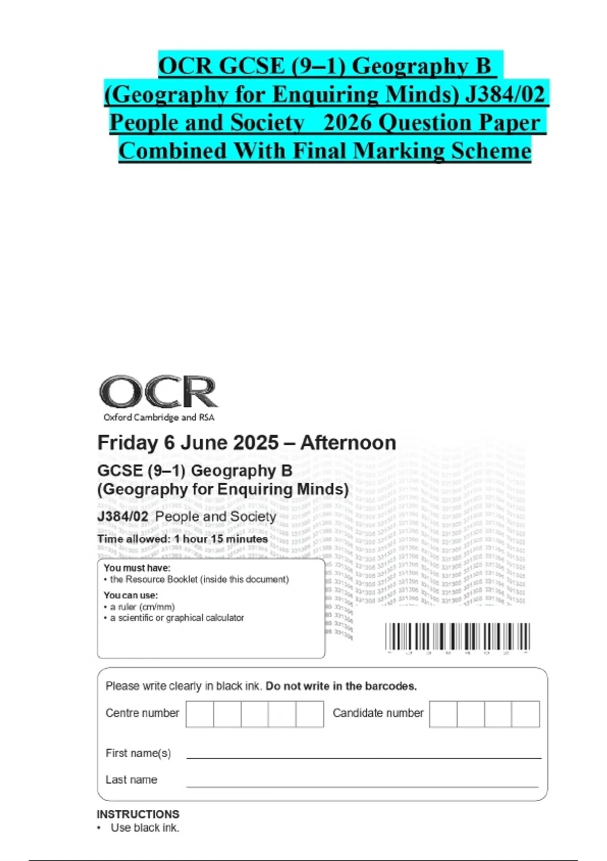 OCR GCSE (9–1) Geography B (Geography for Enquiring Minds) J384/02 People and Society 2026 Question Paper Combined With Final Marking Scheme
