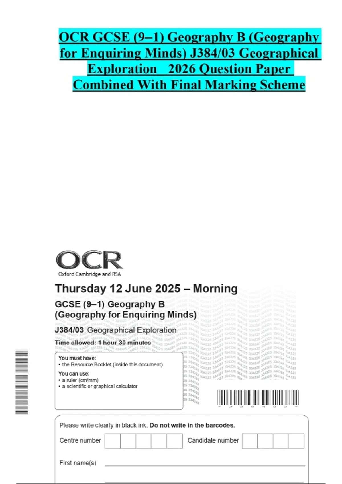 OCR GCSE (9–1) Geography B (Geography for Enquiring Minds) J384/03 Geographical Exploration 2026 Question Paper Combined With Final Marking Scheme