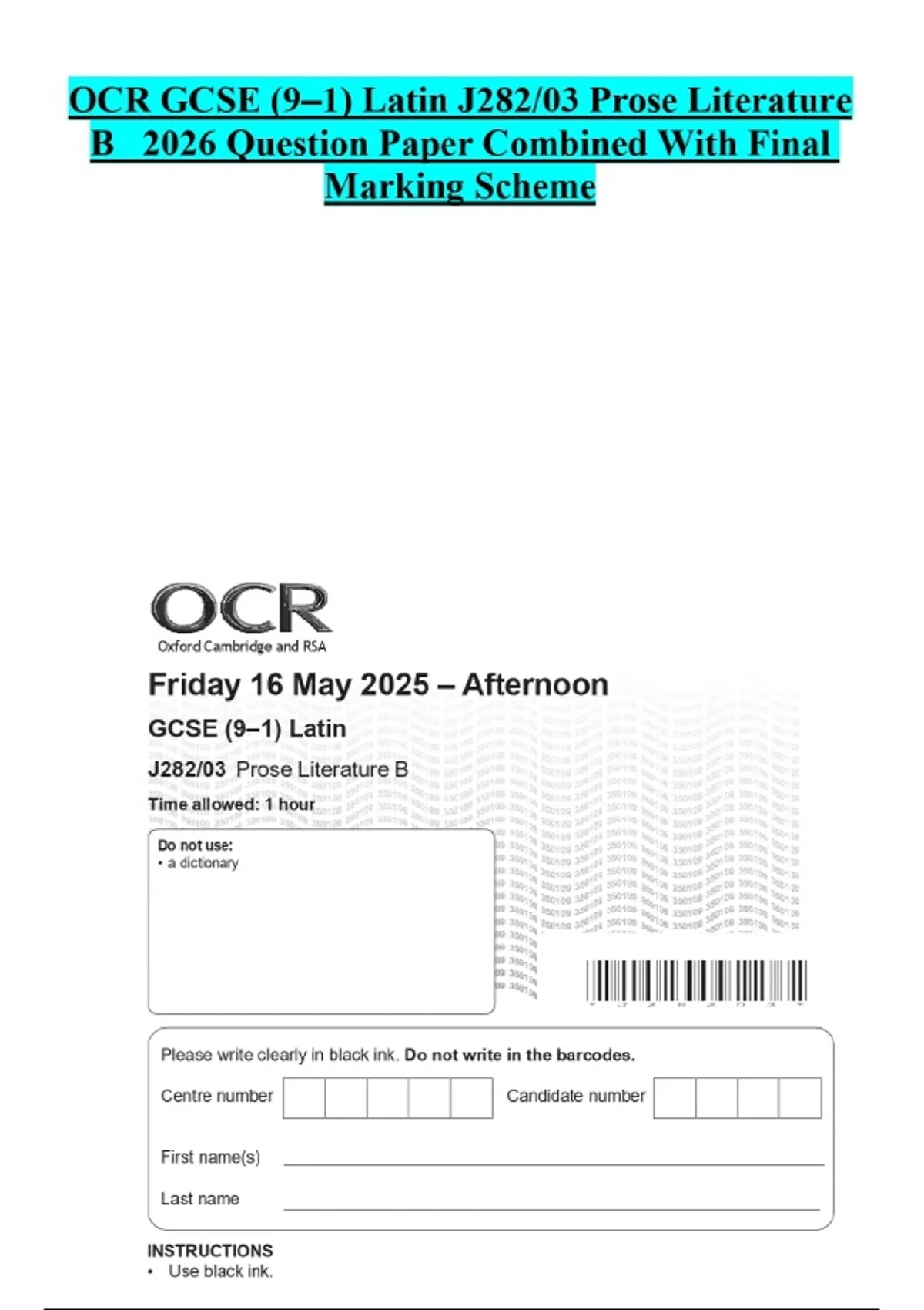 OCR GCSE (9–1) Latin J282/03 Prose Literature B 2026 Question Paper Combined With Final Marking Scheme