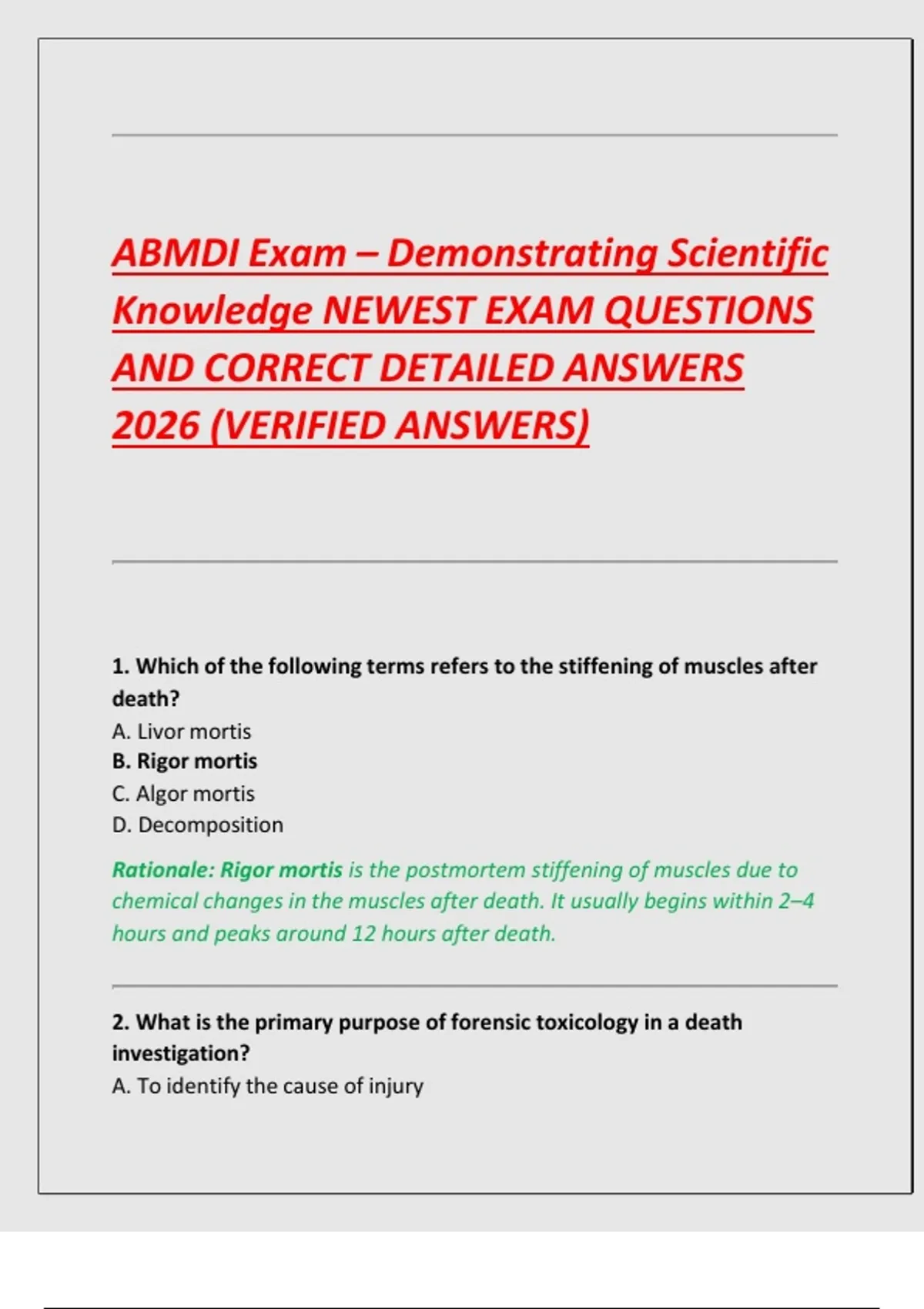Rationale: Rigor mortis is the postmortem stiffening of muscles due to