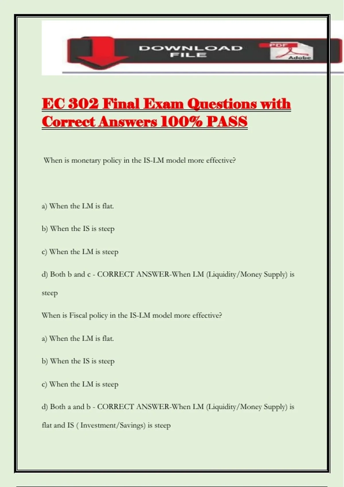 EC 302 Final Exam Questions with