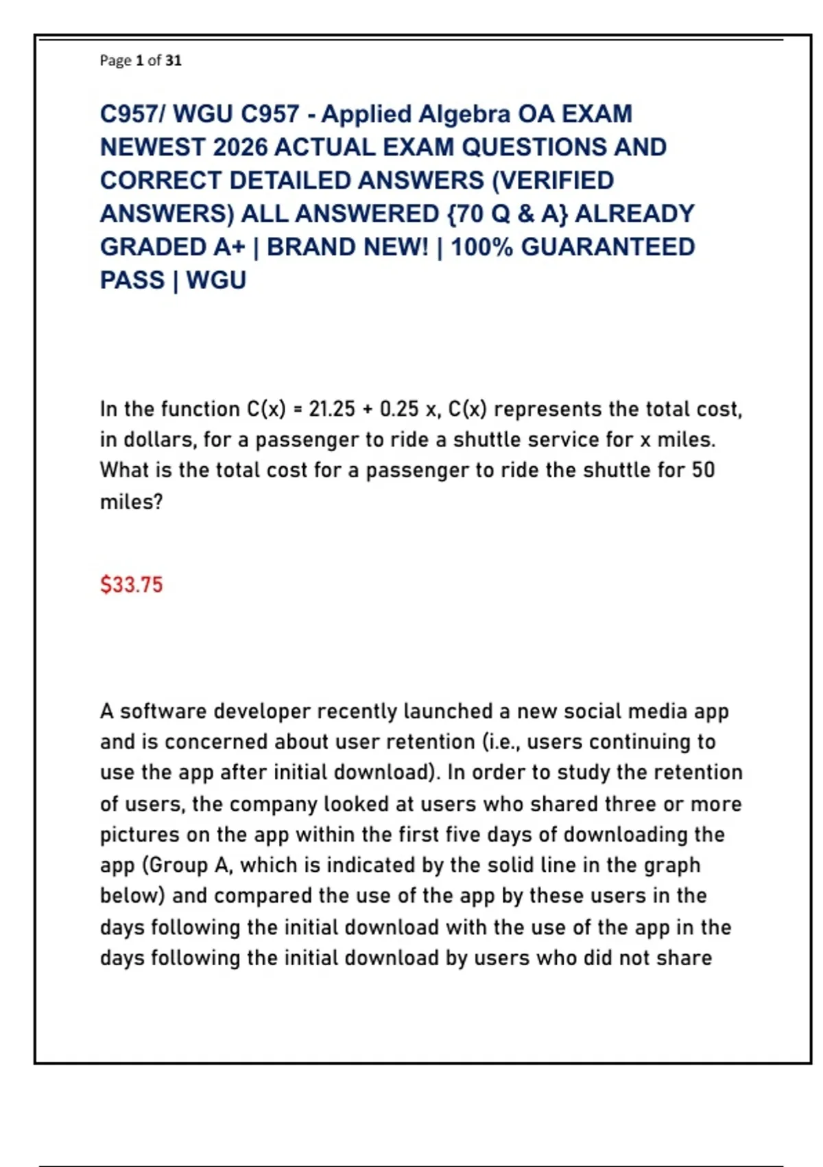 C957/ WGU C957 - Applied Algebra OA EXAM NEWEST 2026 ACTUAL EXAM QUESTIONS AND CORRECT DETAILED ANSWERS (VERIFIED ANSWERS) ALL ANSWERED {70 Q & A} ALREADY GRADED A+ | BRAND NEW! | 100% GUARANTEED PASS | WGU
