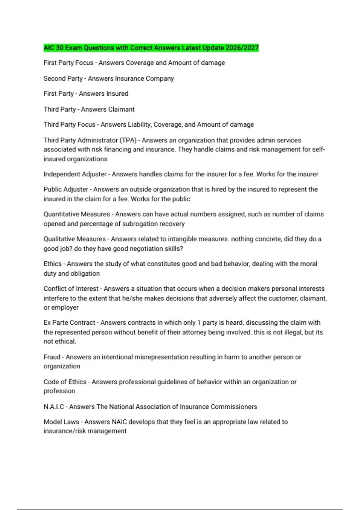 N.A.I.C - Answers The National Association of Insurance Commissioners
