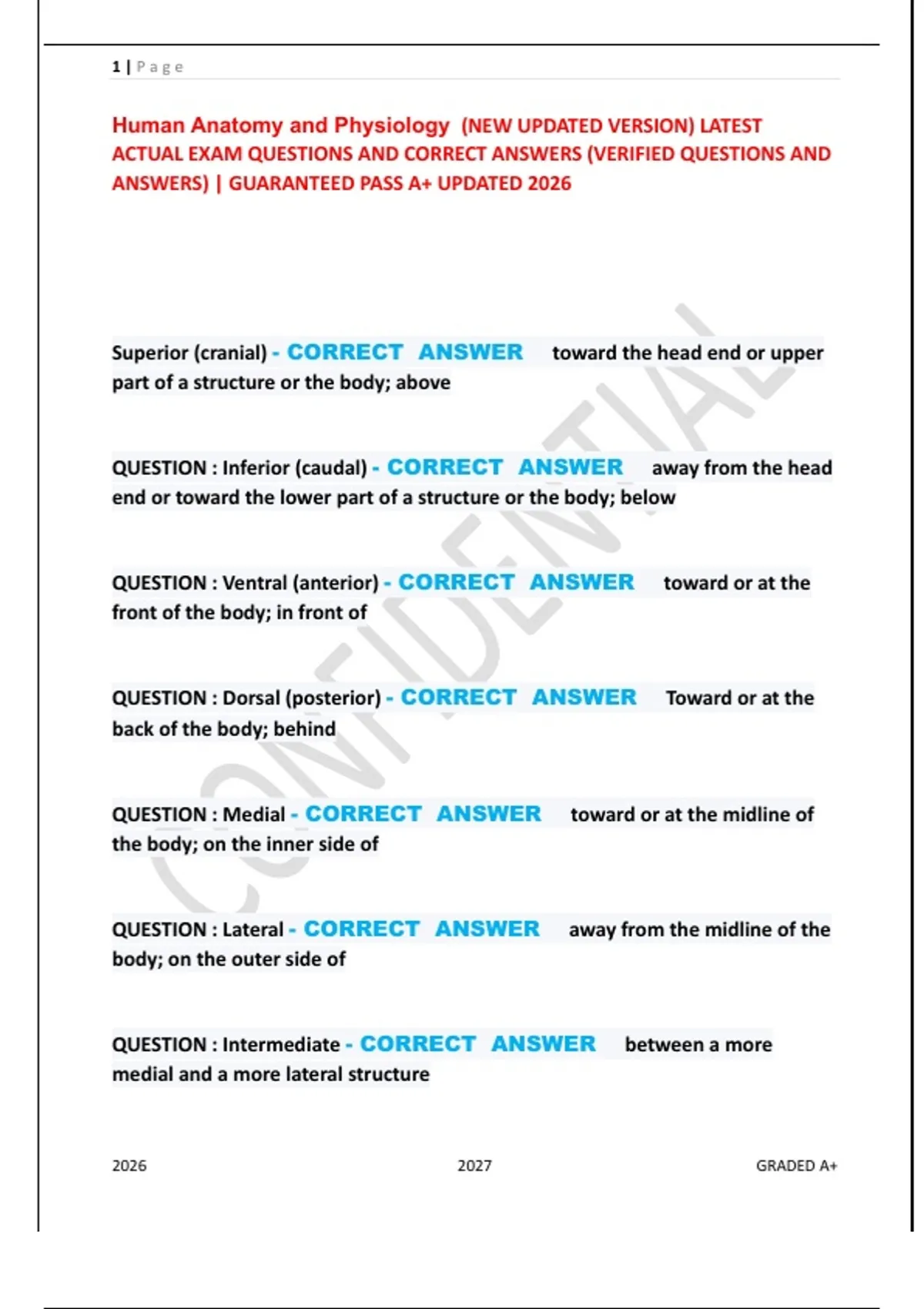 Prepare for your Human Anatomy and Physiology exam with a comprehensive 2026 practice test. This guide includes original practice questions with verified answers and detailed rationales, covering all major body systems. Perfect for reviewing skeletal, muscular, circulatory, respiratory, nervous, and digestive systems. Students can download these A+ rated study materials for effective exam preparation and self-assessment. Boost your confidence and aim for top scores on the Human Anatomy and Physiology exam with this fully detailed and reliable study resource.