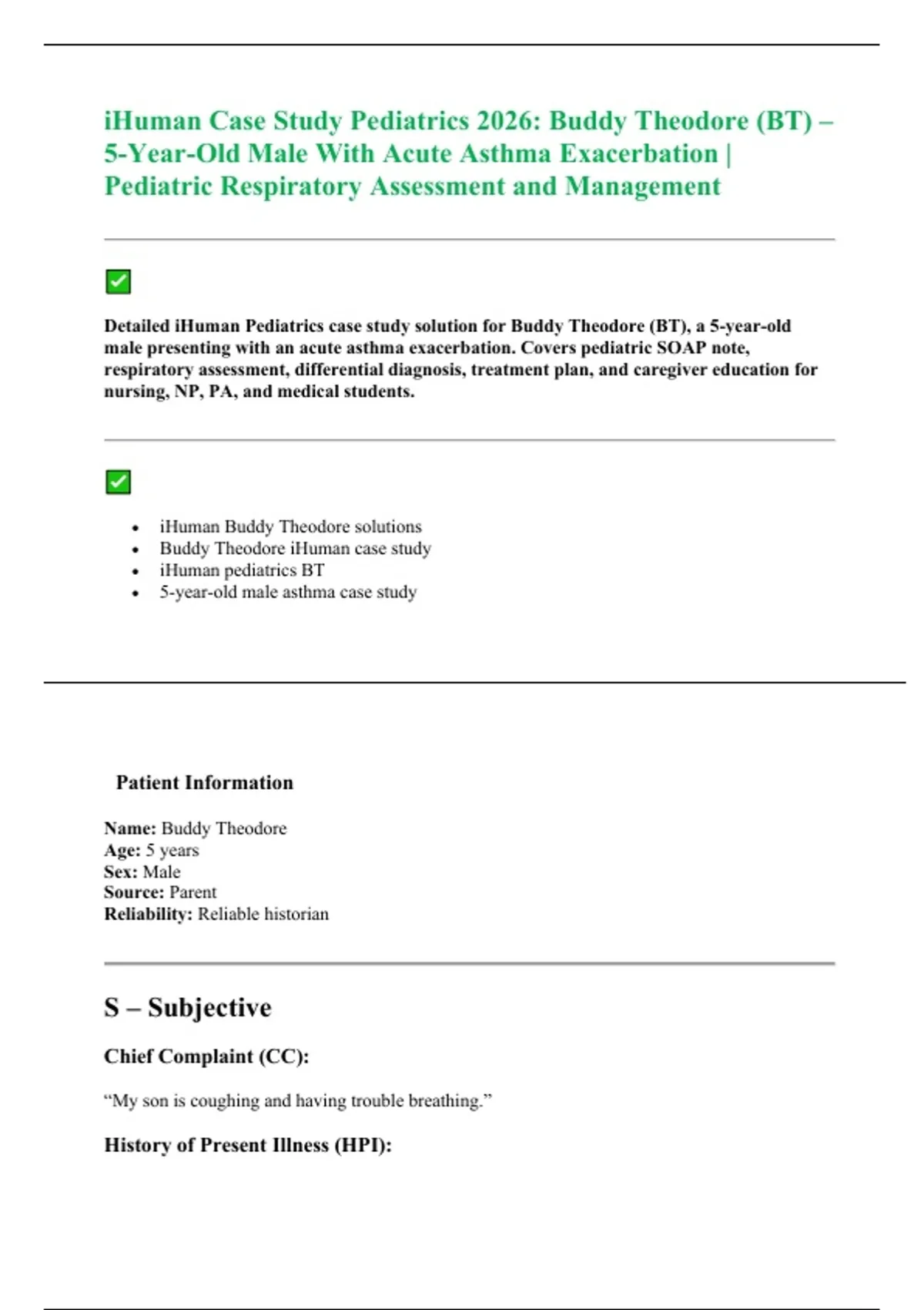 iHuman Case Study Pediatrics 2026: Buddy Theodore (BT) –