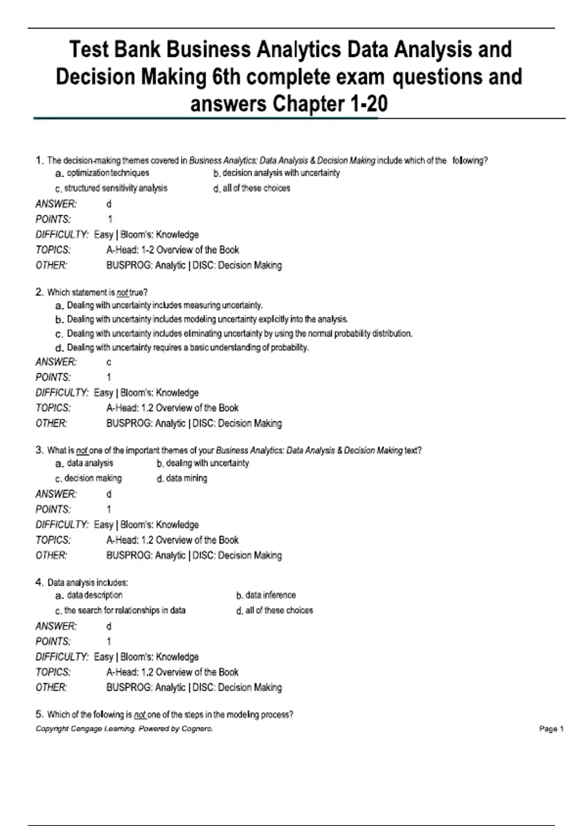 Test Bank Business Analytics Data Analysis and Decision Making 6th Edition By S. Christian Albright, Wayne L. Winston |All Chapters ( 1-20 Test Bank Business Analytics Data Analysis and Decision Making 6th Edition By S. Christian Albright, Wayne L. Winston |All Chapters ( 1-20 Test Bank Business Analytics Data Analysis and Decision Making 6th Edition By S. Christian Albright, Wayne L. Winston |All Chapters ( 1-20 Test Bank Business Analytics Data Analysis and Decision Making 6th Edition By S. Christian Albright, Wayne L. Winston |All Chapters ( 1-20