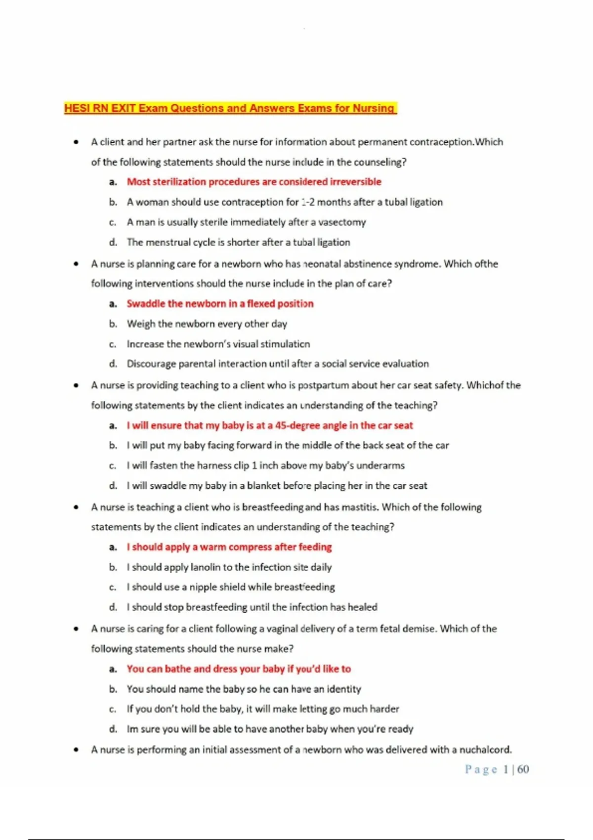 HESI RN EXIT Exam Questions and Answers Exams for Nursing