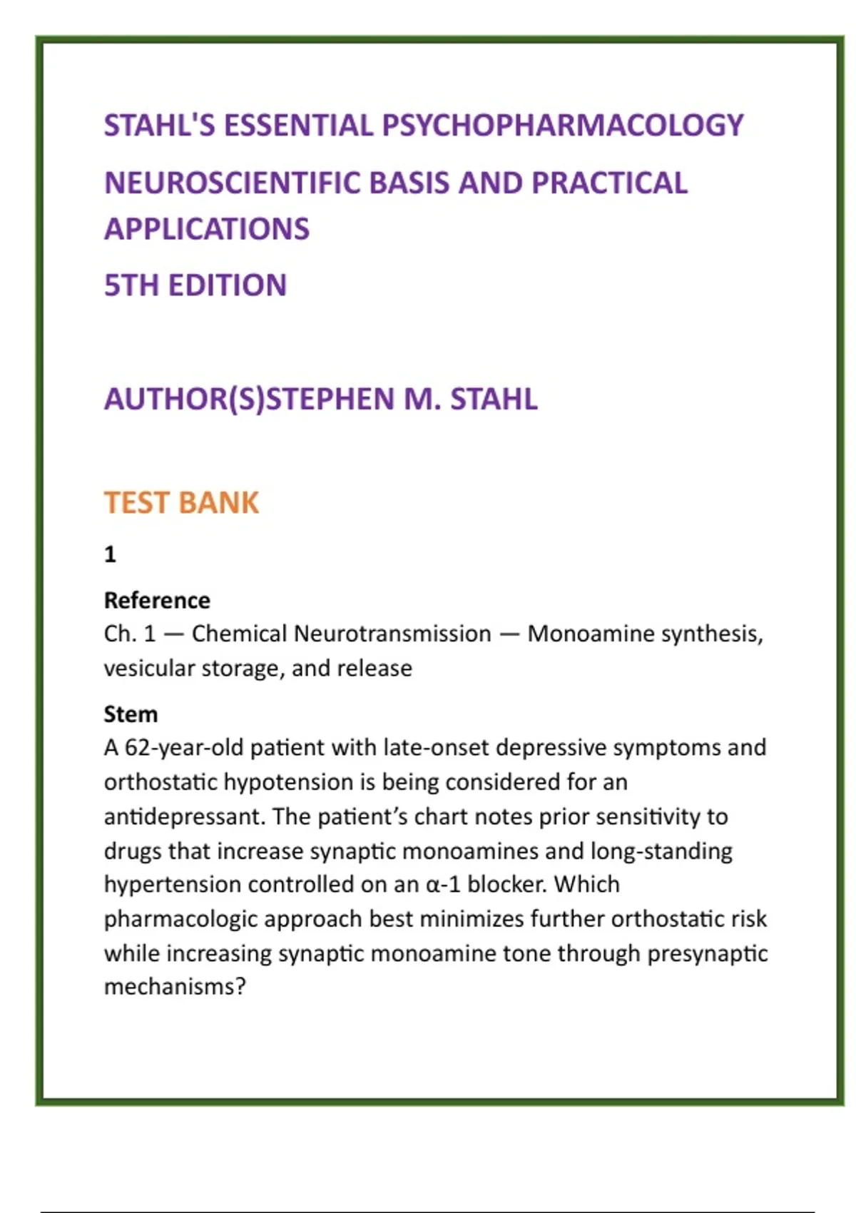 Stahl, S. M. (2021). Essential Psychopharmacology (5th ed.). Ch.