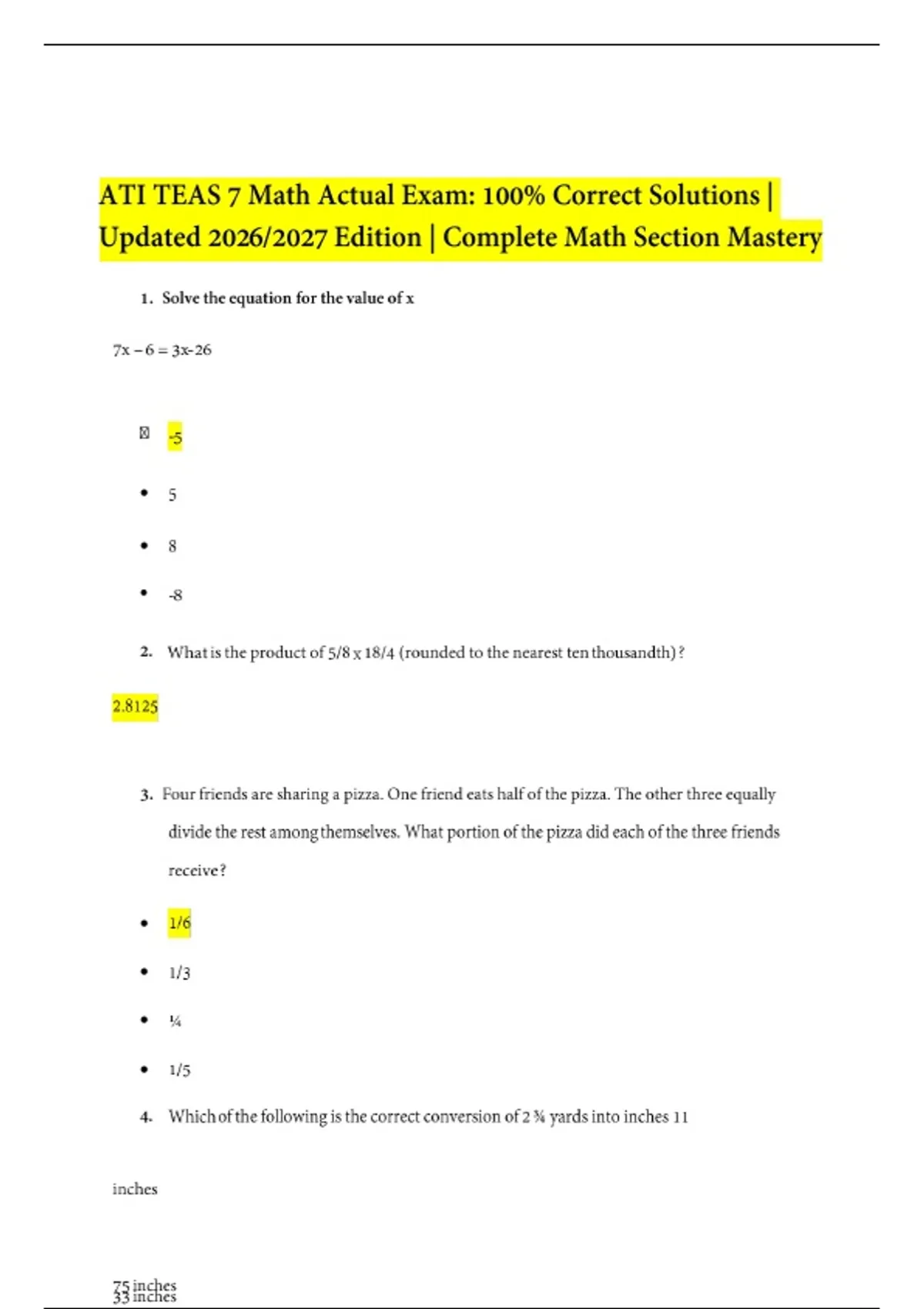 ATI TEAS 7 Math Actual Exam: 100% Correct Solutions | Updated 2026/2027 Edition | Complete Math Section Mastery