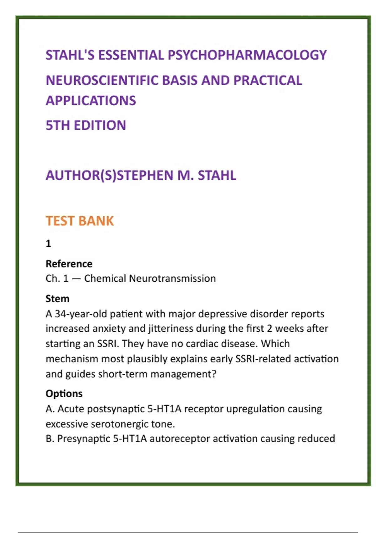 A (incorrect): 5-HT1A postsynaptic upregulation is a longer-term