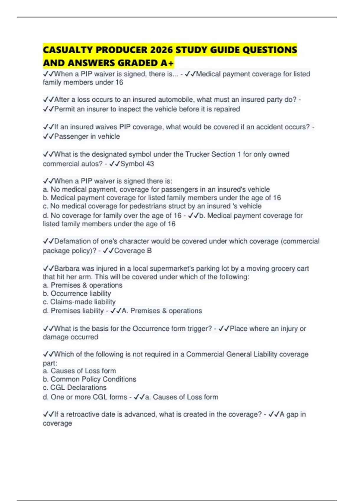 ✔✔When a PIP waiver is signed, there is... - ✔✔Medical payment coverage for listed