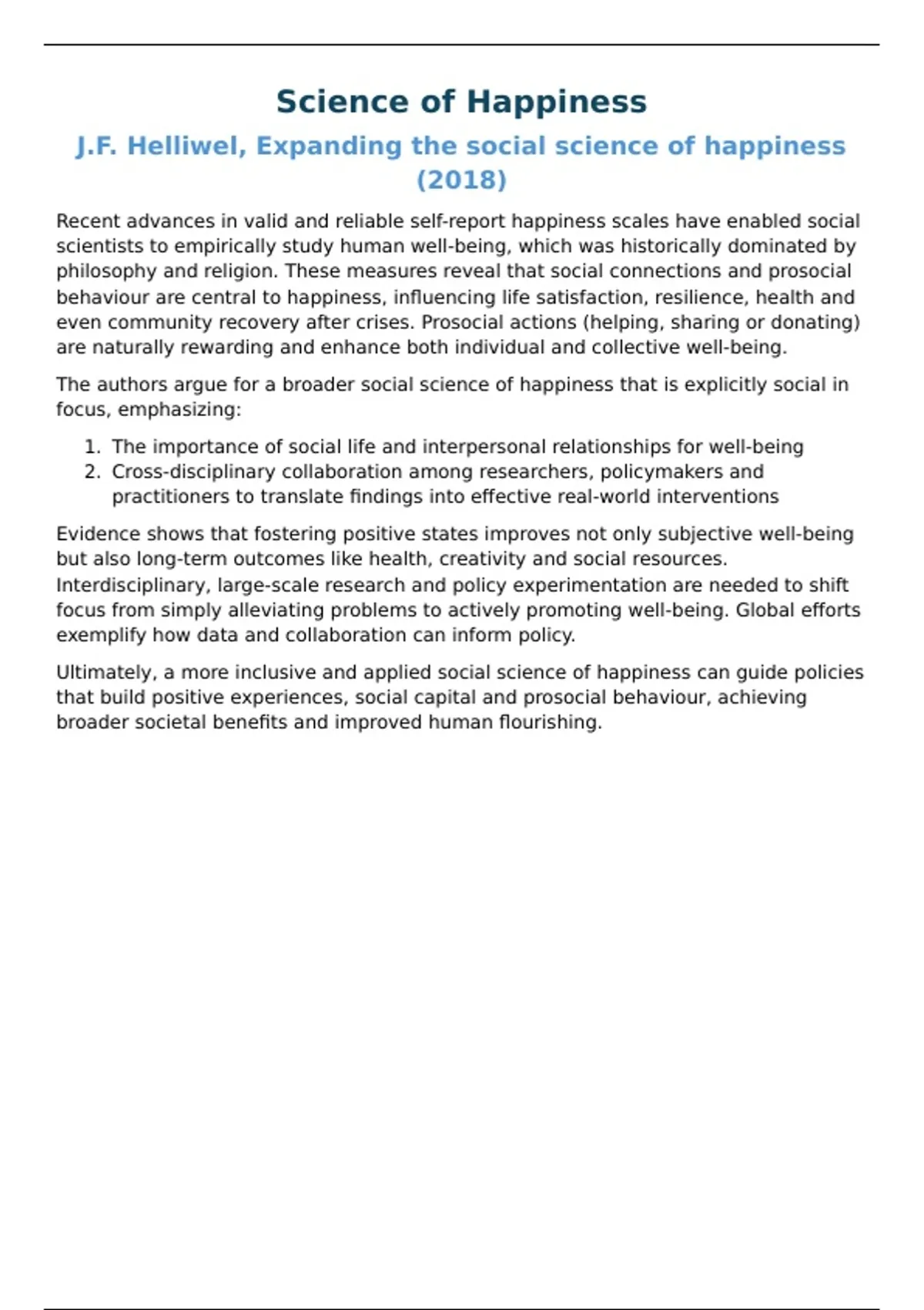 behaviour are central to happiness, influencing life satisfaction, resilience, health and