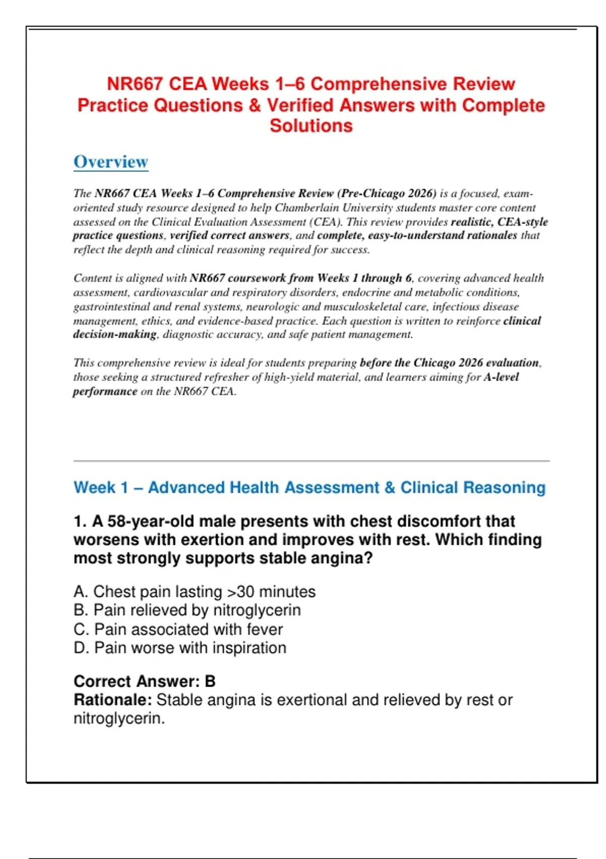 The NR667 CEA Weeks 1–6 Comprehensive Review (Pre-Chicago 2026) is a focused, exam-