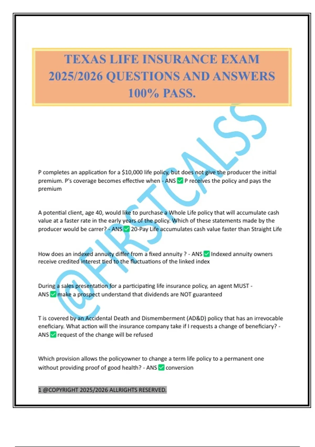 TEXAS LIFE INSURANCE EXAM