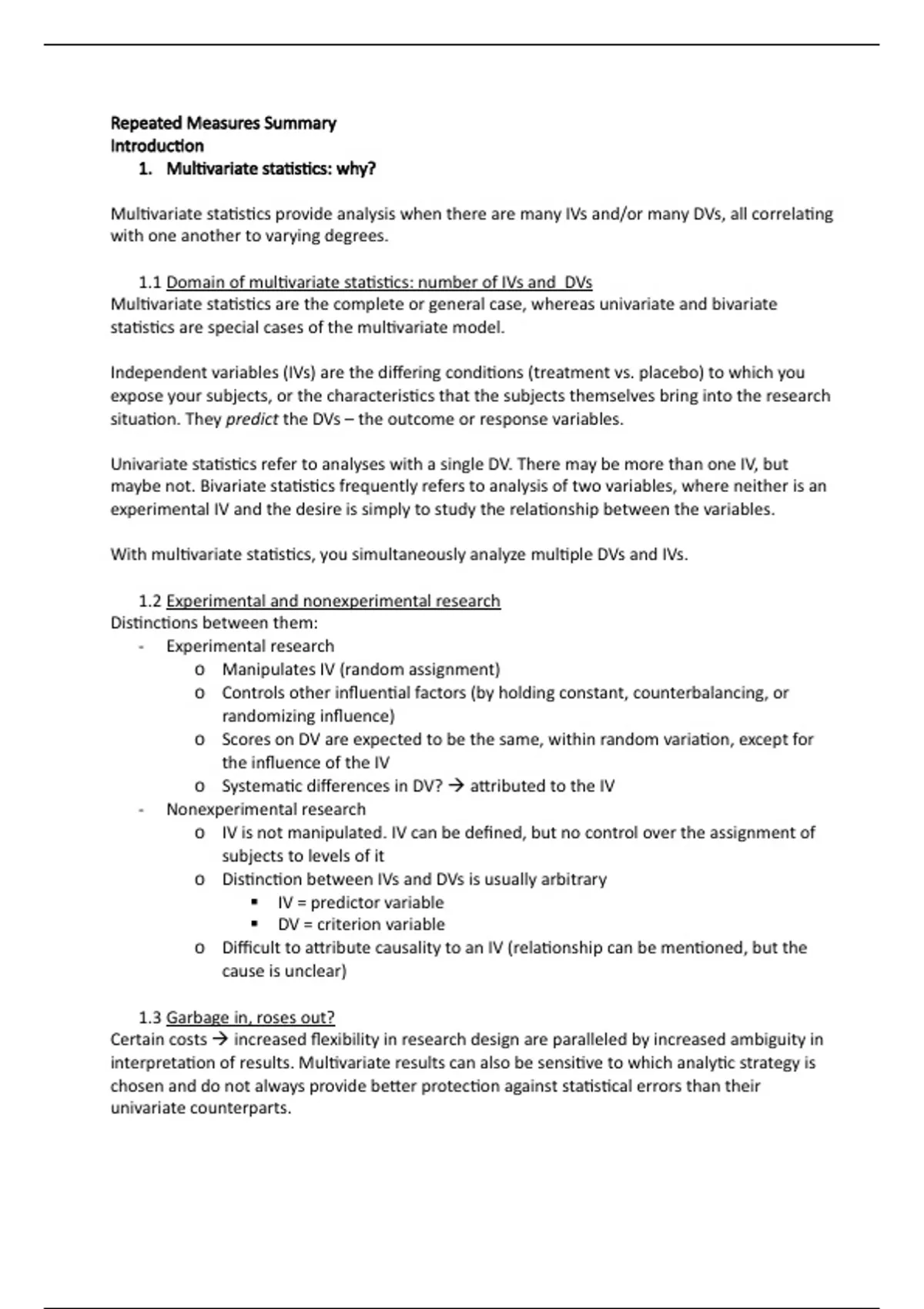 Samenvatting Using Multivariate Statistics - Repeated Measures (book + readings)
