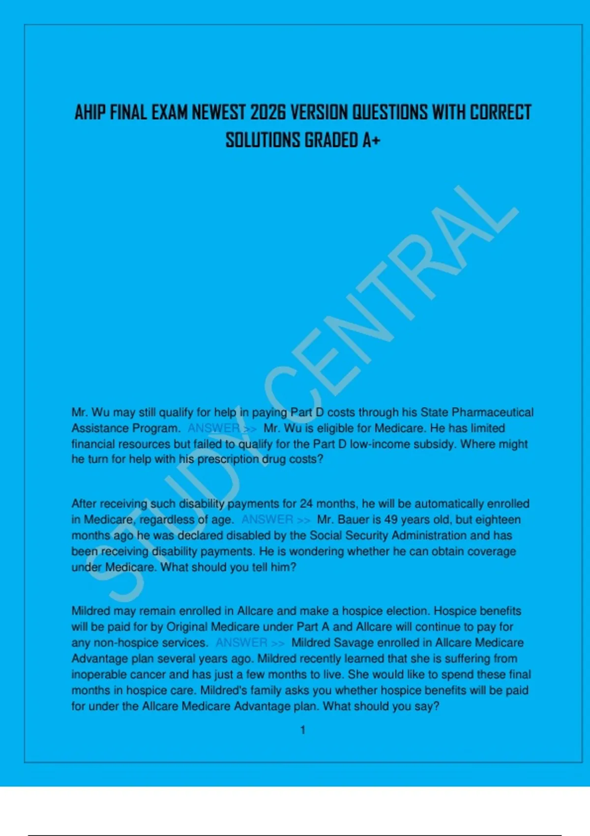 Assistance Program. ANSWER >> Mr. Wu is eligible for Medicare. He has limited