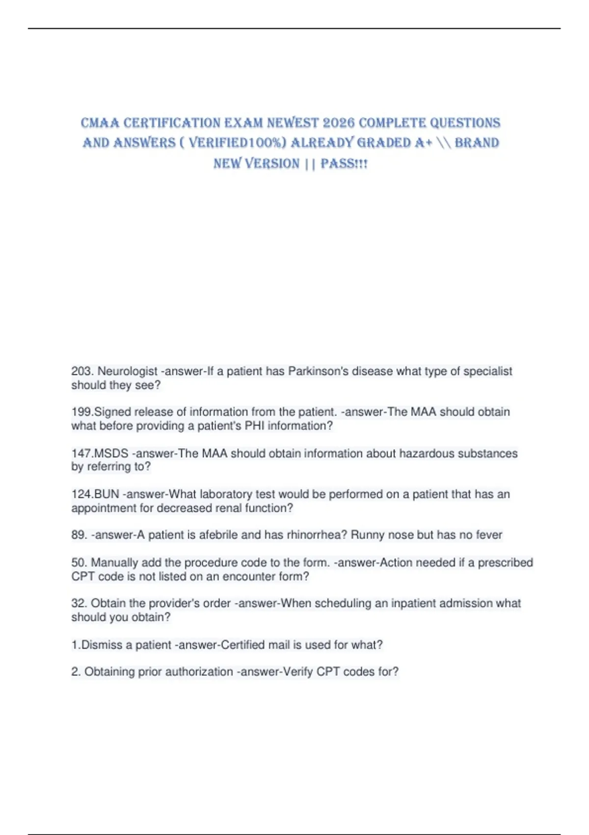 CMAA Certification Exam newest 2026 complete questions and answers.pdf