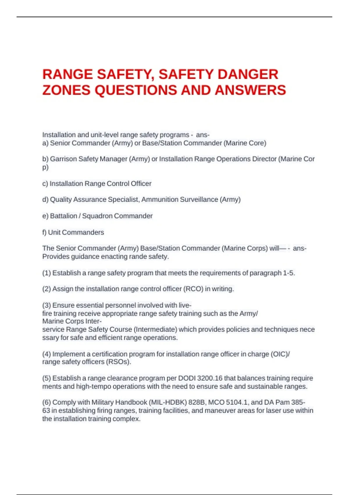 RANGE SAFETY, SAFETY DANGER ZONES QUESTIONS AND ANSWERS