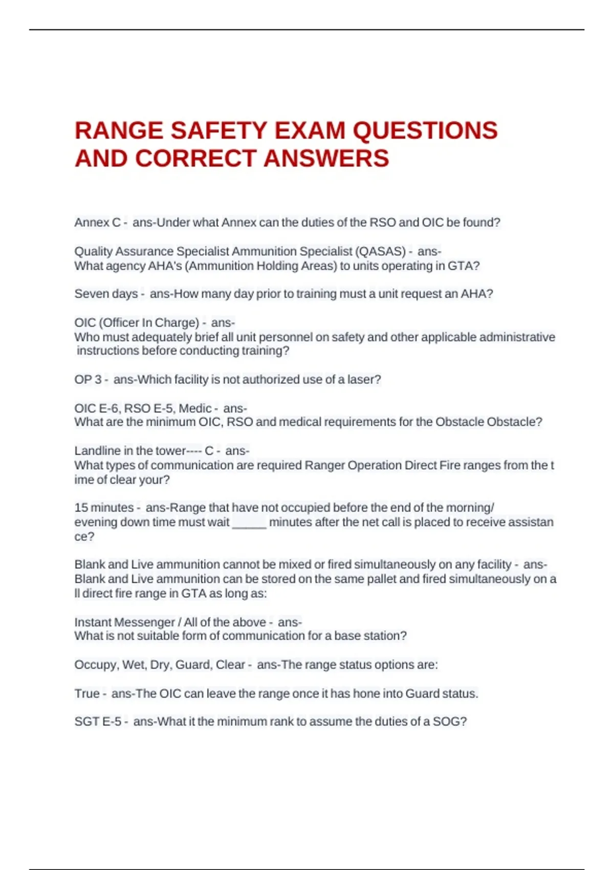 AND CORRECT ANSWERS