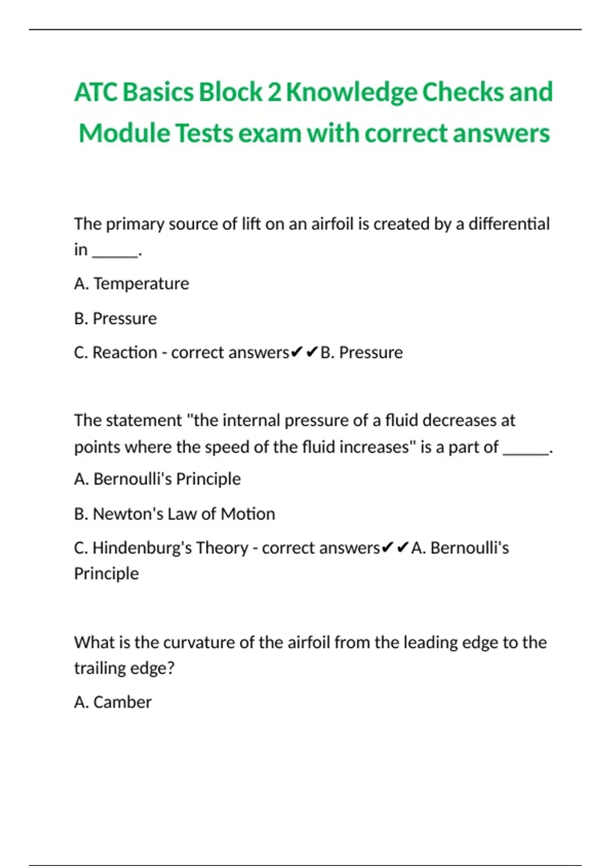 ATC Basics Block 2 Knowledge Checks and Module Tests exam with correct answers