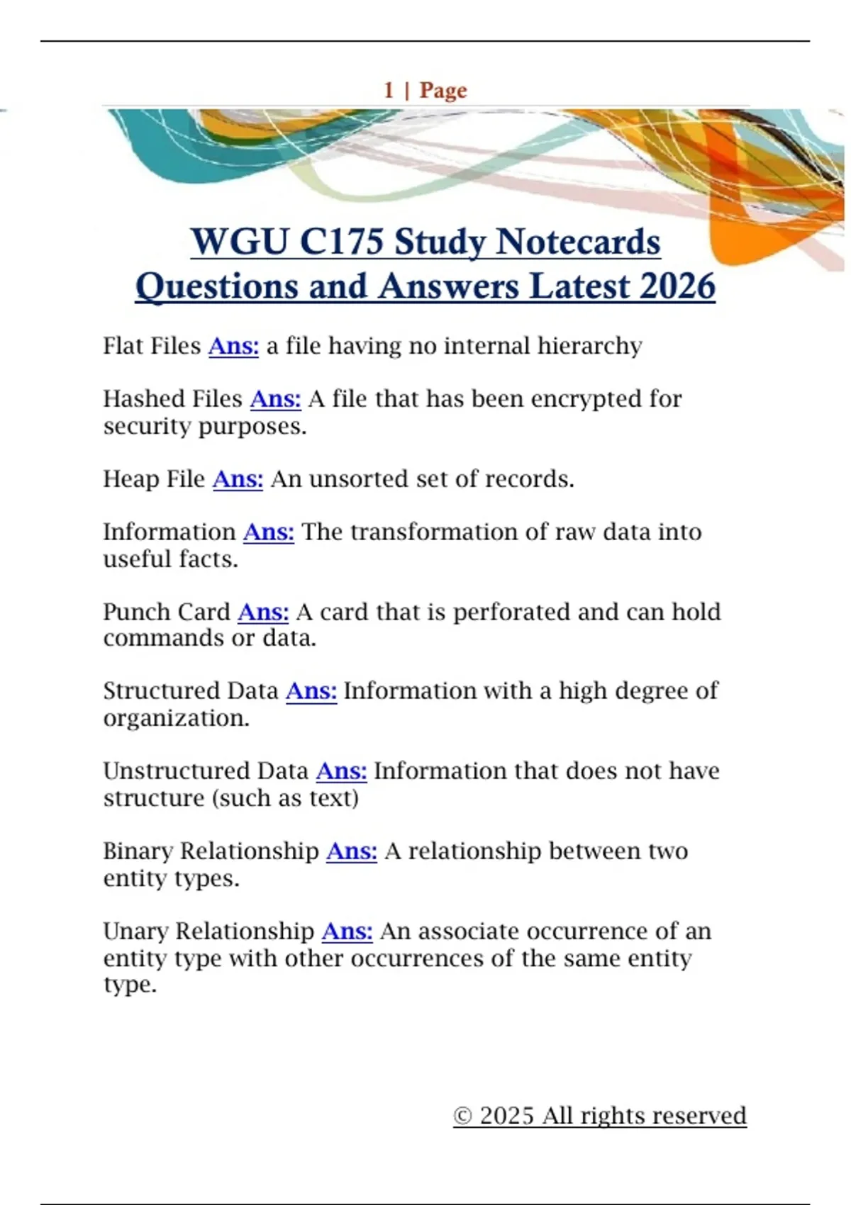 WGU C175 Study Notecards Questions and Answers Latest 202