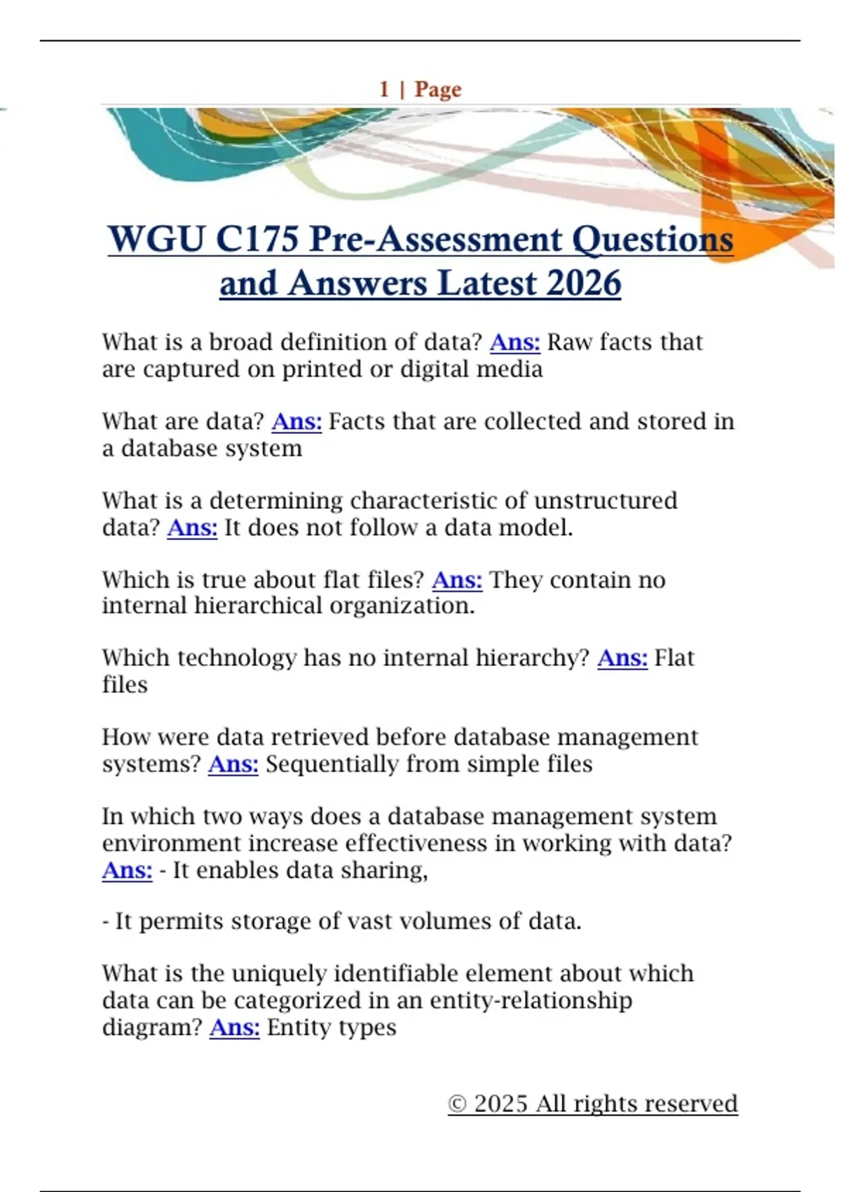 WGU C175 Pre-Assessment Questions and Answers Latest 2026