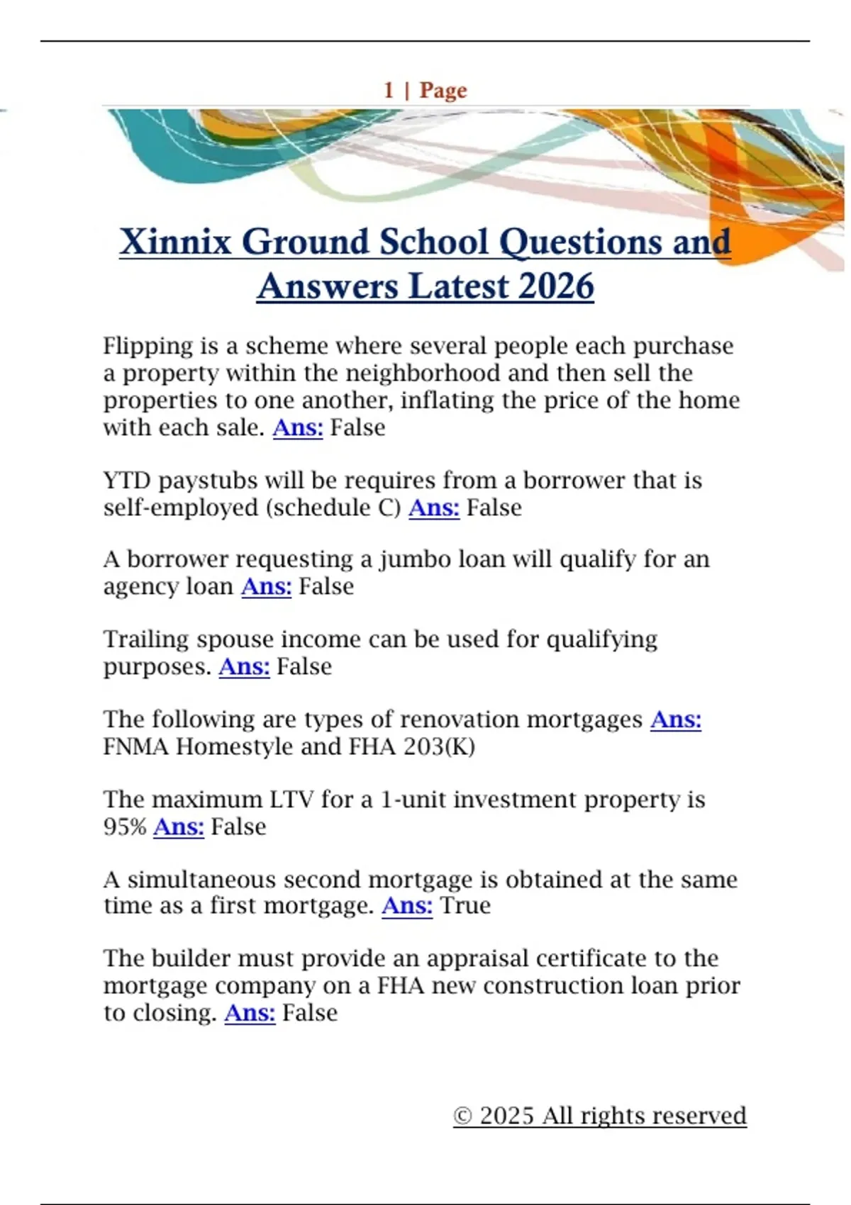 Xinnix Ground School Questions and