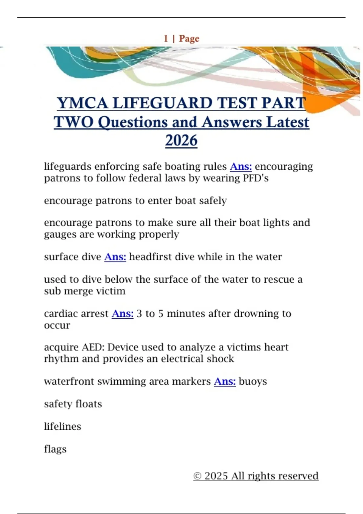 YMCA LIFEGUARD TEST PART TWO Questions and Answers Latest 2026