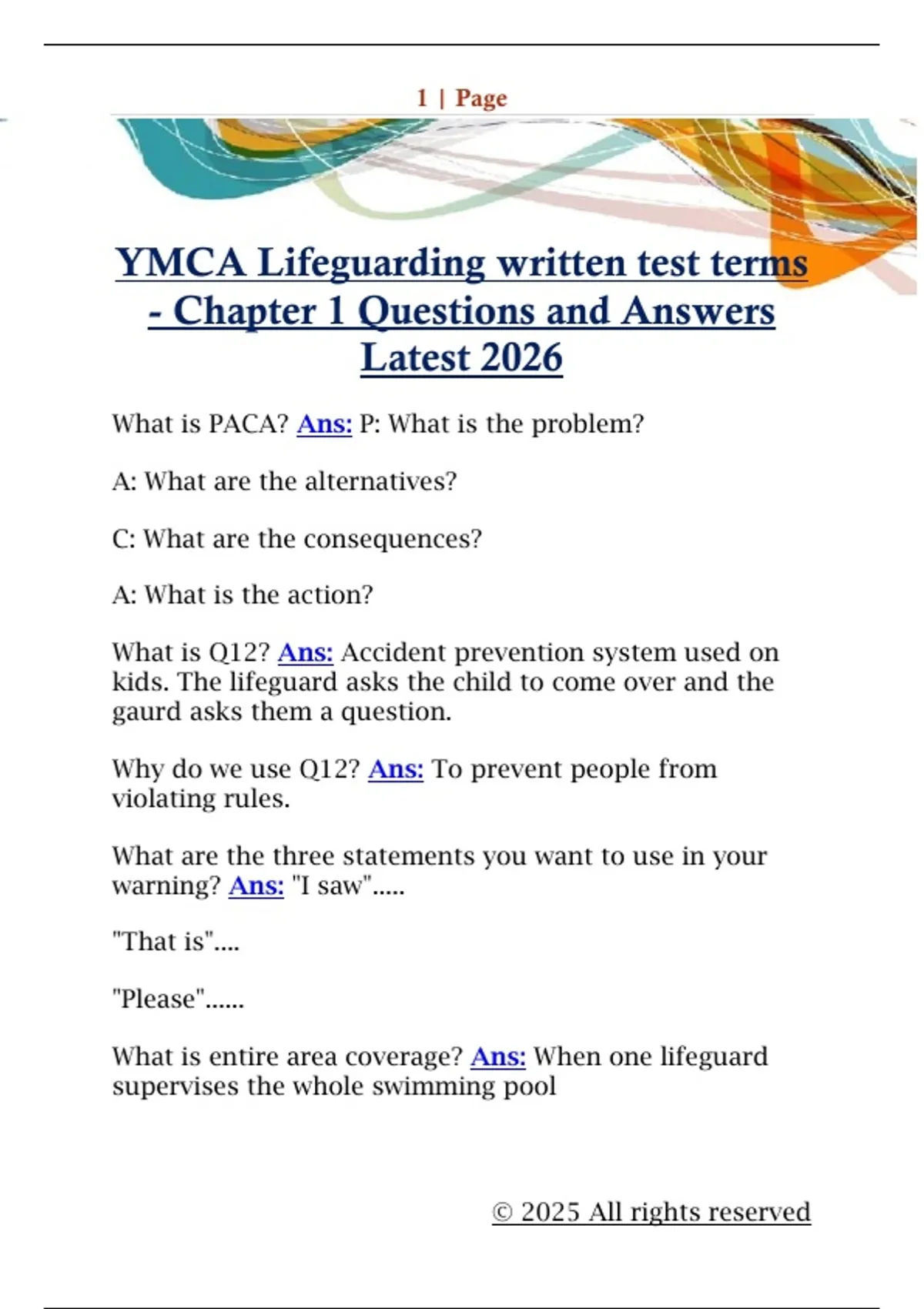 YMCA Lifeguarding written test terms - Chapter 1 Questions and Answers Latest 2026