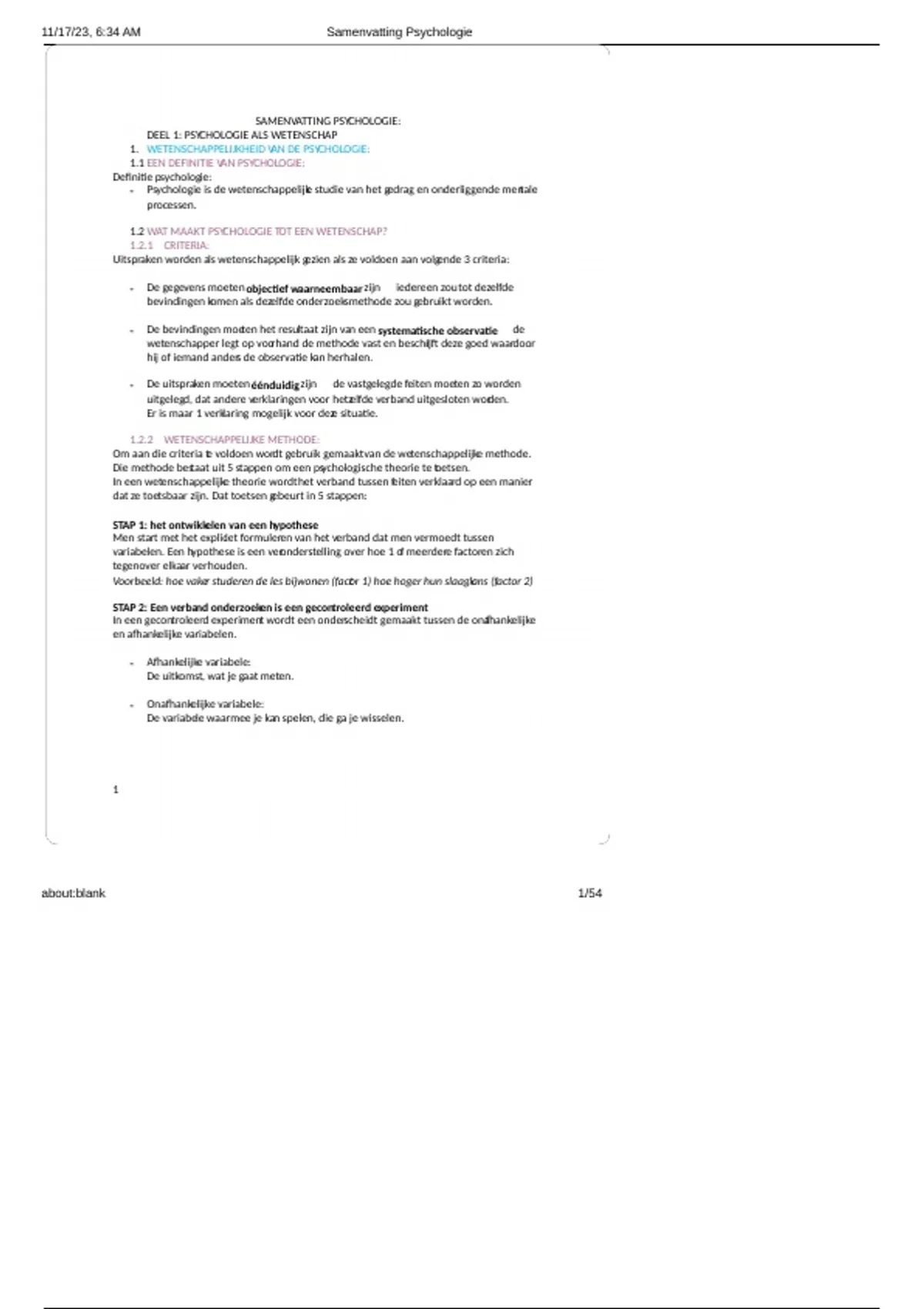 , 11/17/23, 6:34 AM Samenvatting Psychologie
