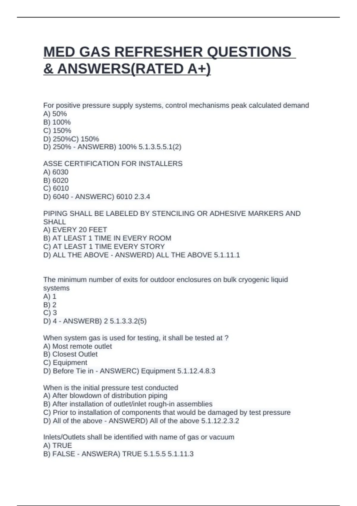 MED GAS REFRESHER QUESTIONS & ANSWERS(RATED A+)