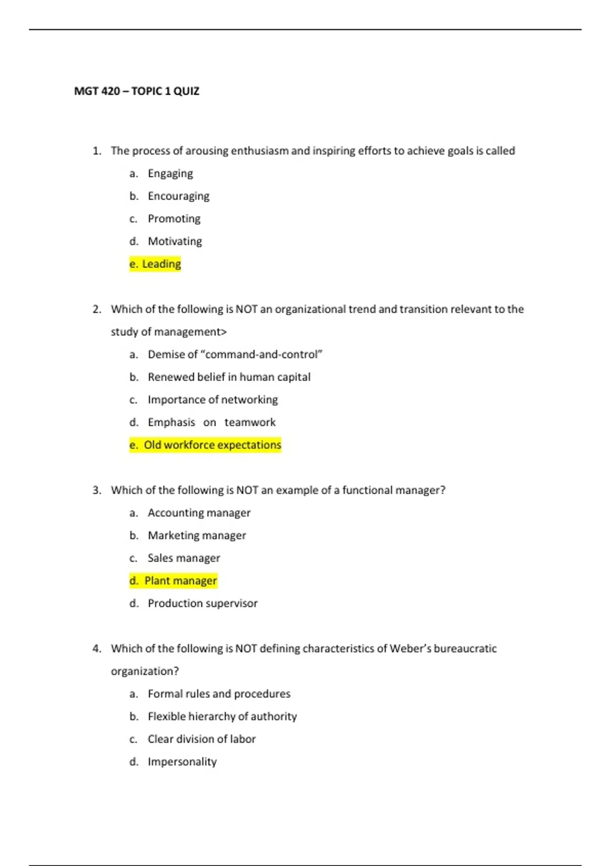 MGT 420 – TOPIC 1 QUIZ
