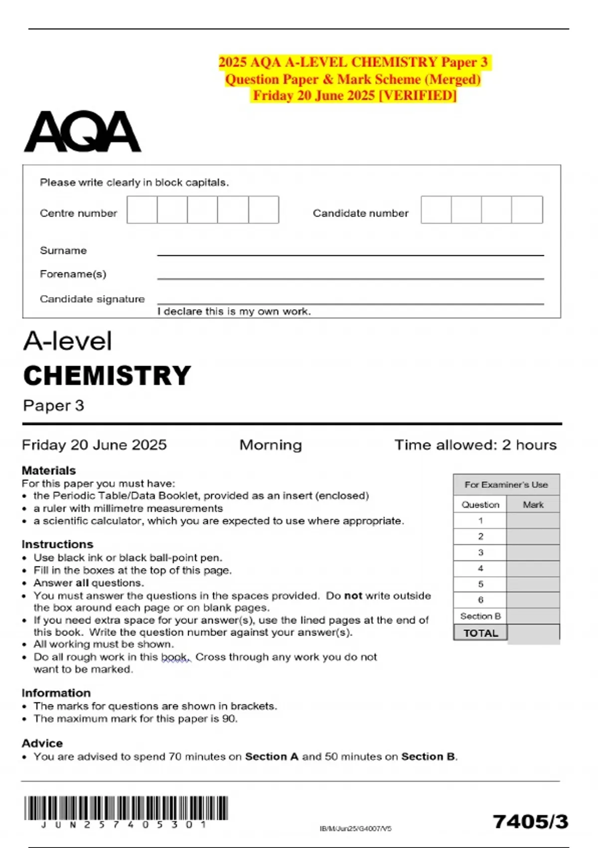 Question Paper & Mark Scheme (Merged)