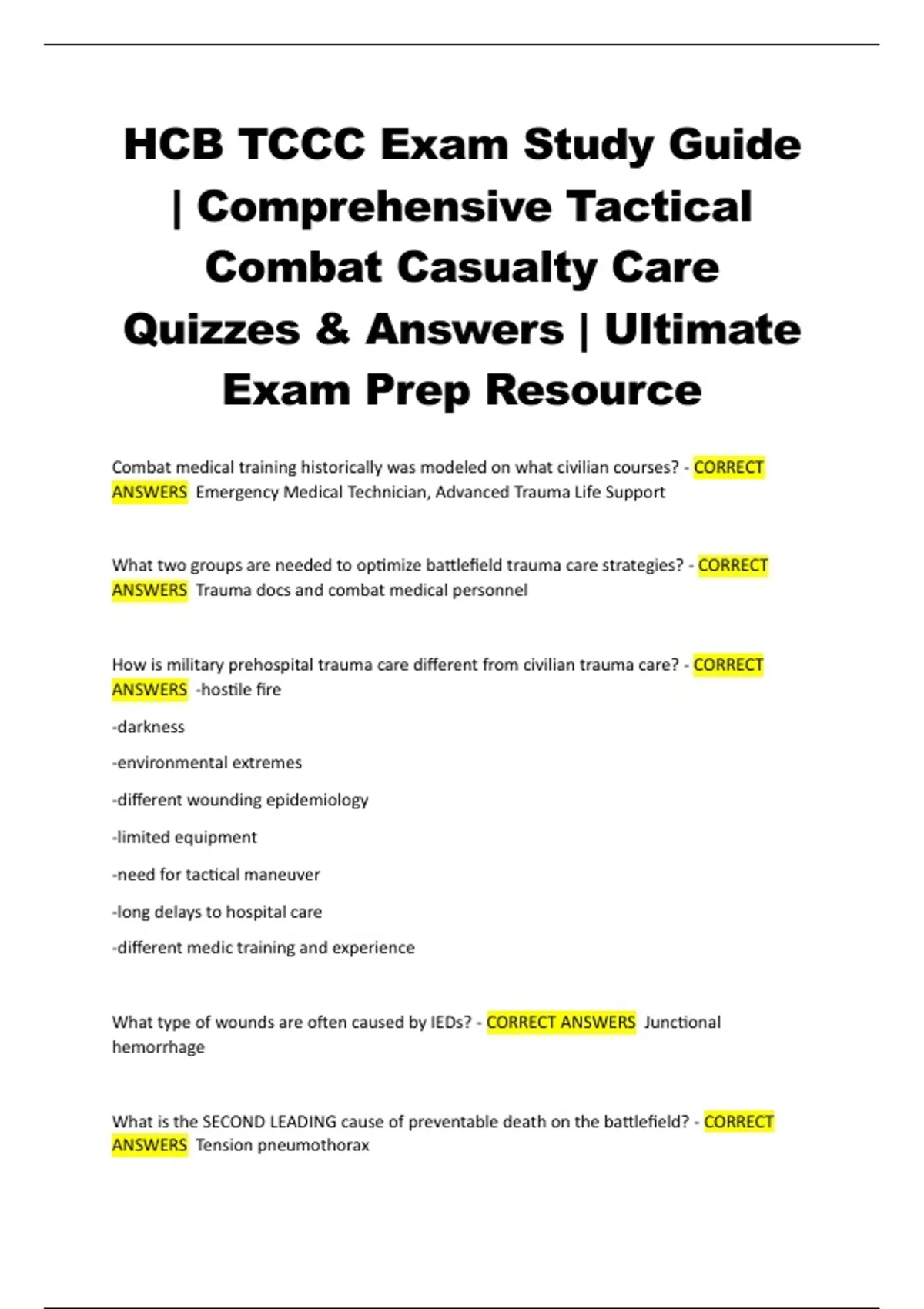 HCB TCCC Exam Review – Tactical Combat Casualty Care Study Notes and Test Prep