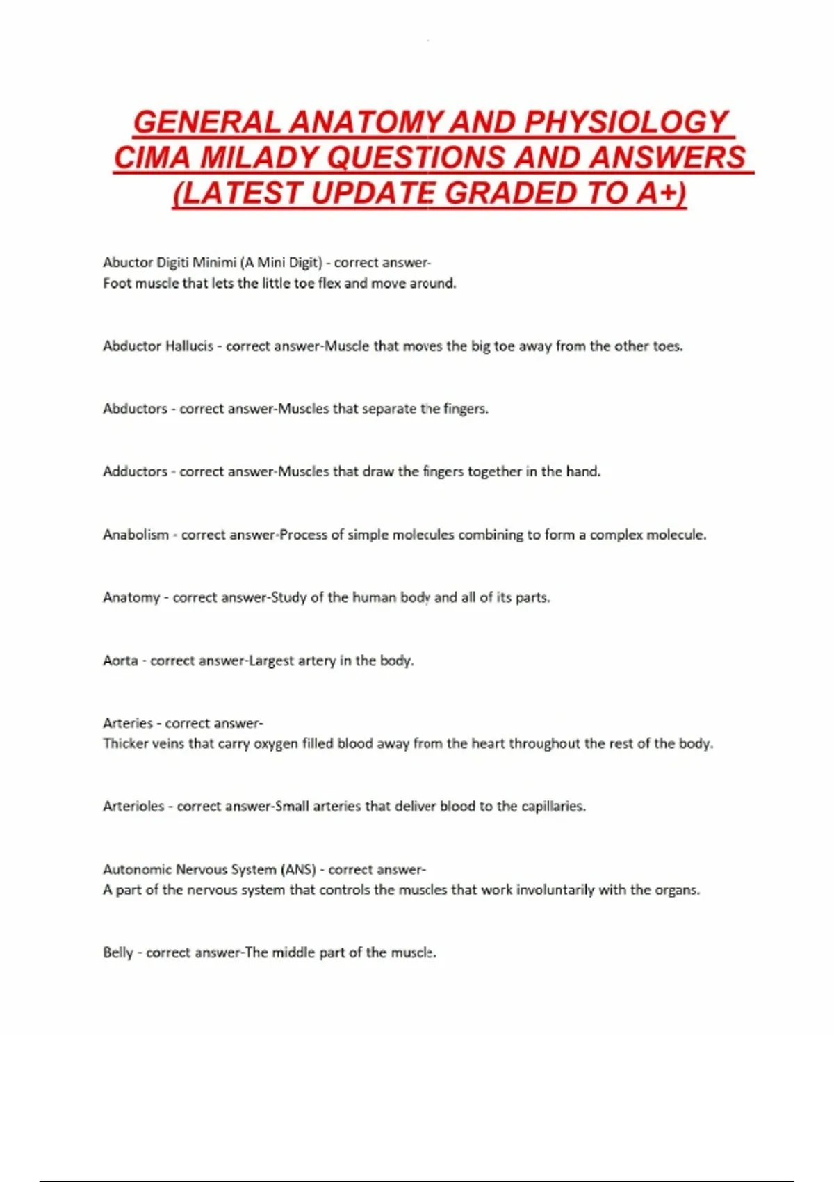 GENERAL ANATOMY AND PHYSIOLOGY CIMA MILADY QUESTIONS AND ANSWERS (LATEST UPDATE GRADED TO A+)GENERAL ANATOMY AND PHYSIOLOGY CIMA MILADY QUESTIONS AND ANSWERS (LATEST UPDATE GRADED TO A+)GENERAL ANATOMY AND PHYSIOLOGY CIMA MILADY QUESTIONS AND ANSWERS (LATEST UPDATE GRADED TO A+)