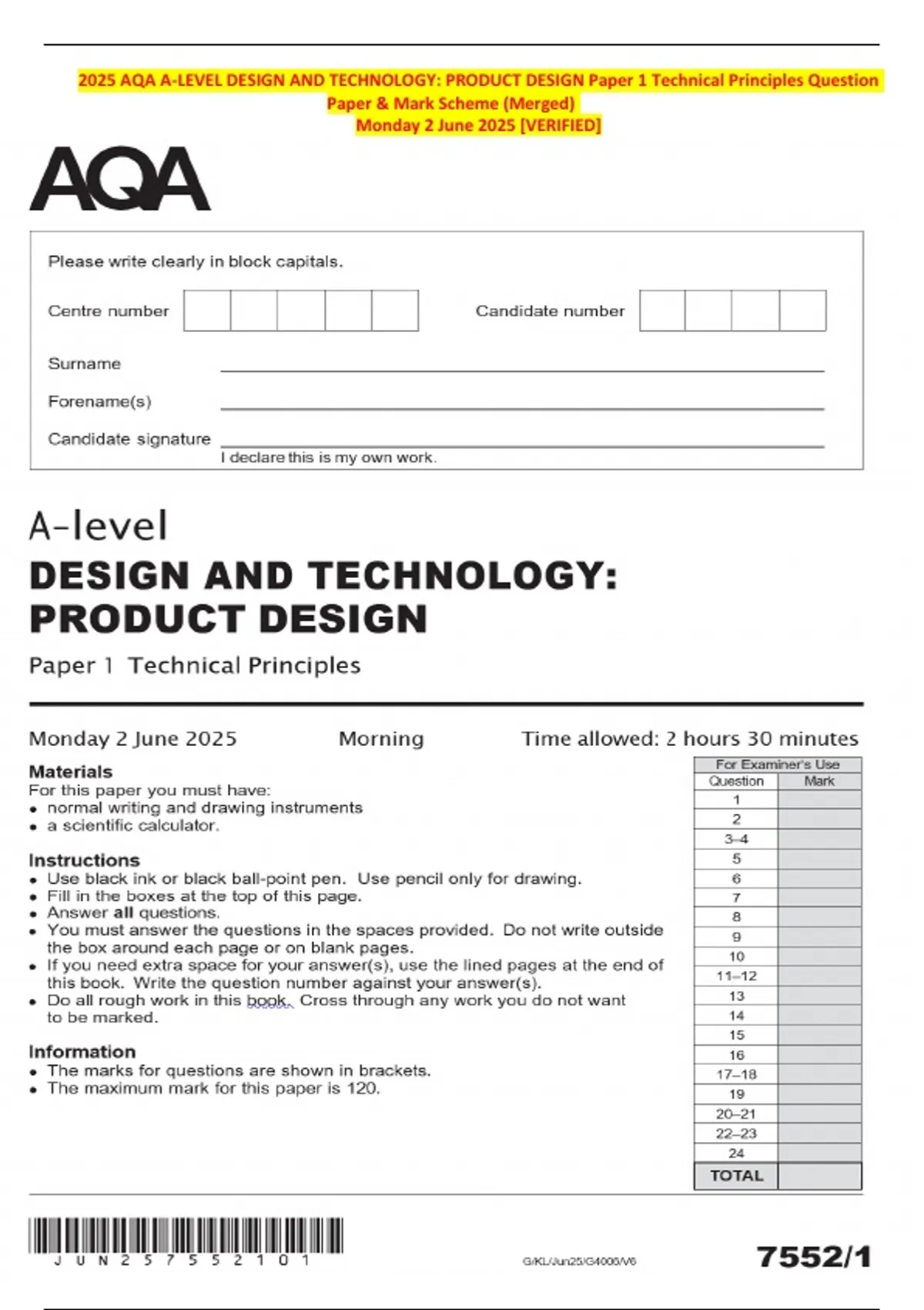 Paper & Mark Scheme (Merged)